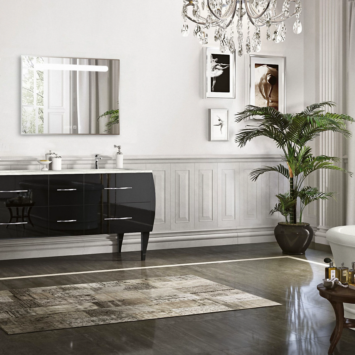 Настенное зеркало с LED-дисплеем Лада 4 прямоугольной формы с аккуратно обработанной кромкой эффектно дополнит интерьер ванной комнаты.