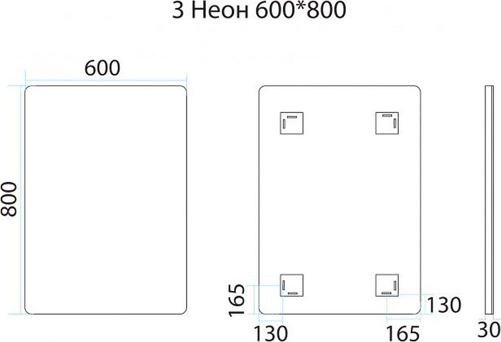 Зеркало для ванной MISTY Неон П-НЕО060080-3ПРСНККУ с подсветкой белое 80х60 см