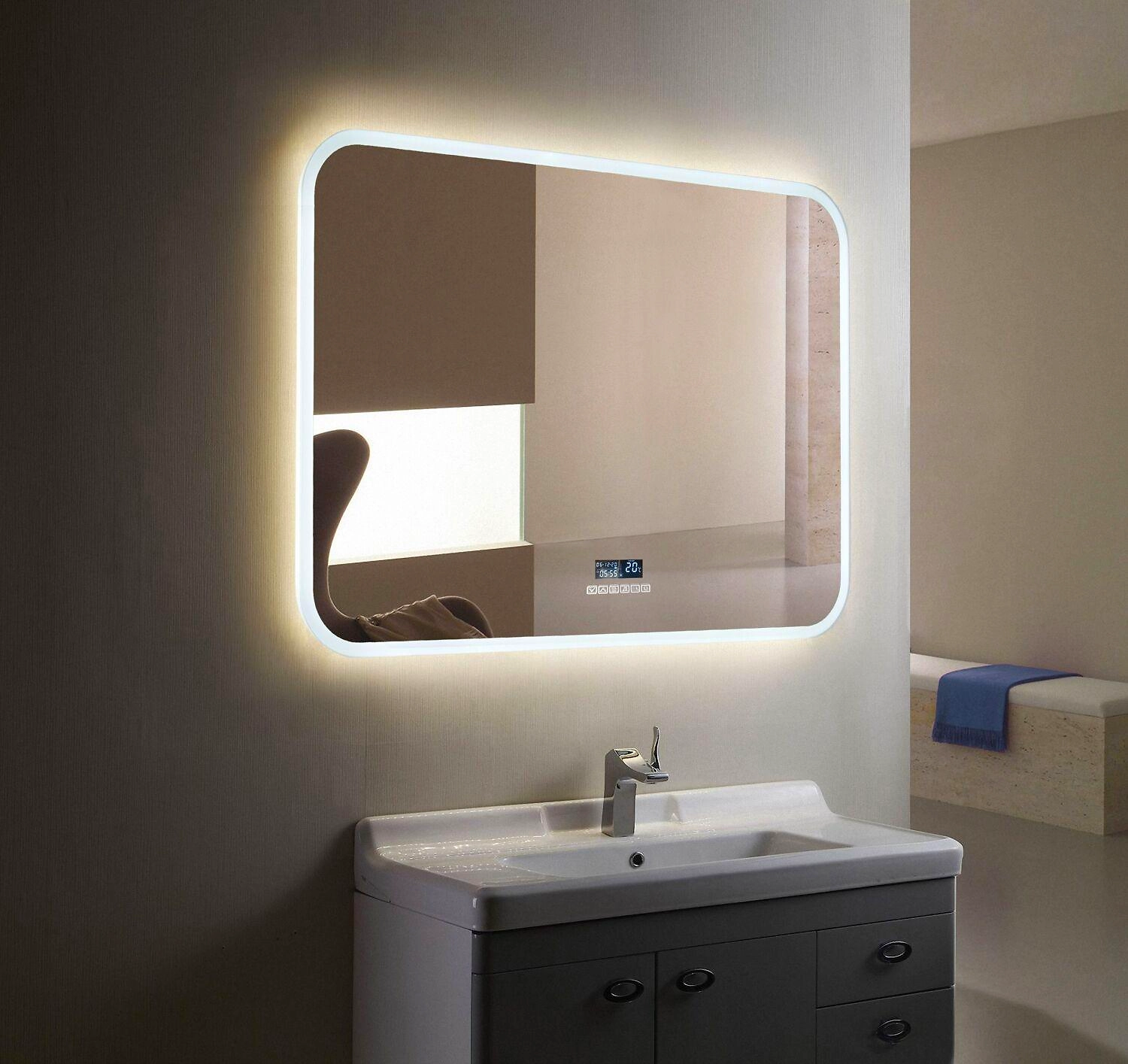 Зеркало с подсветкой и сенсорным дисплеем Стив - стильный завершающий акцент в оформлении интерьера ванной комнаты.