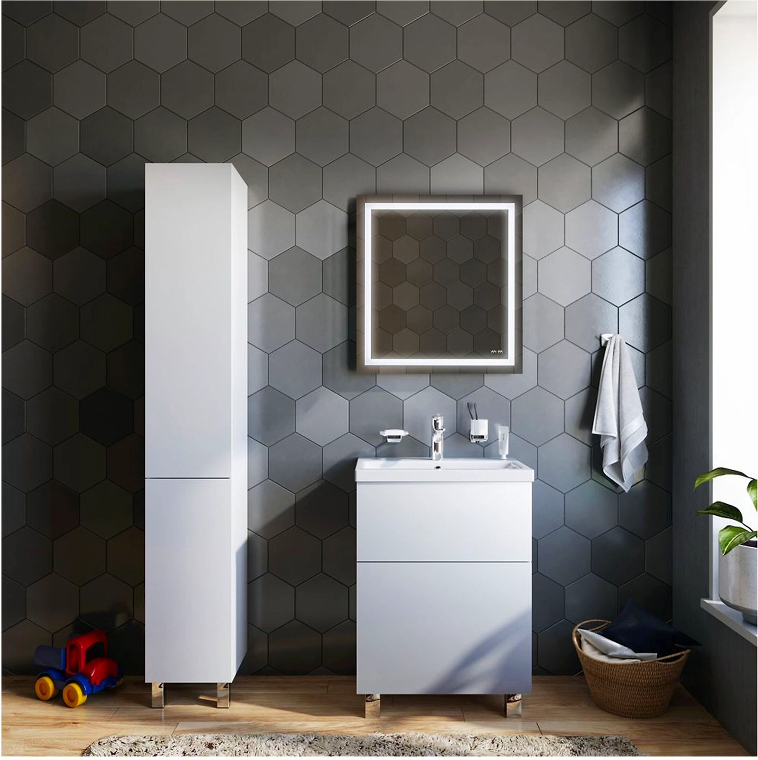 - LED-подсветка по периметру создает качественное освещение без теней.