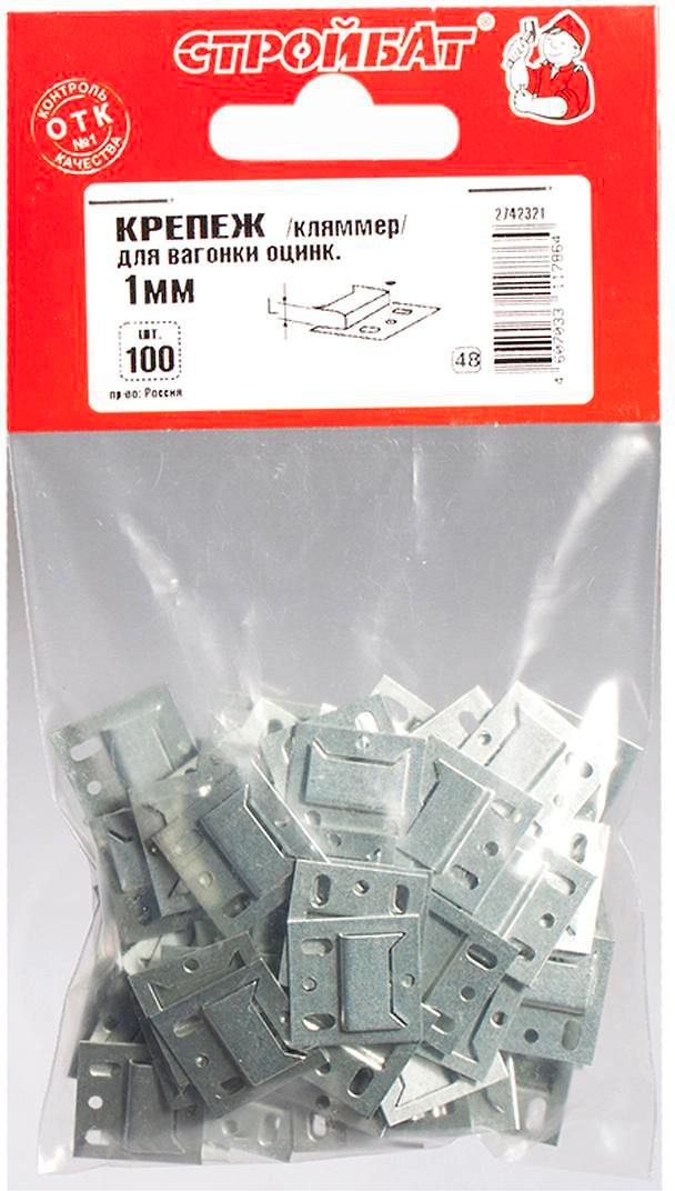 Кляймер для стеновой панели Стройбат 23x20x1 мм 100 штук