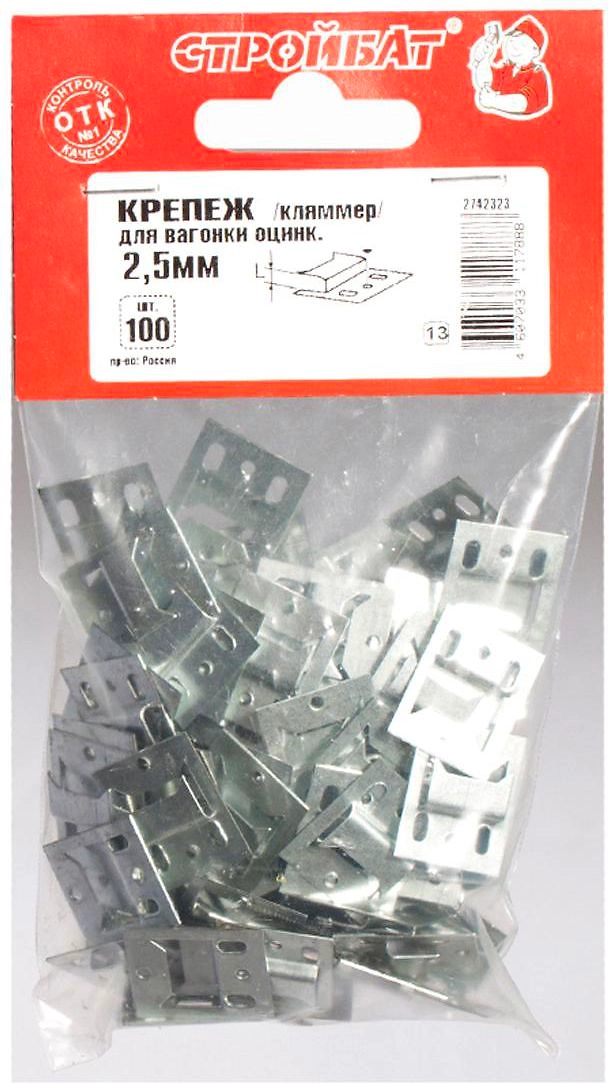 Кляймер для стеновой панели Стройбат 23x20x2,5 мм 100 штук