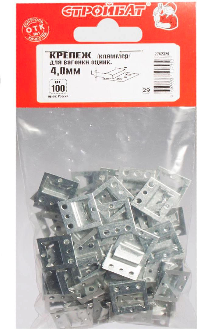 Кляймер для стеновой панели Стройбат 24x22x4 мм 100 штук