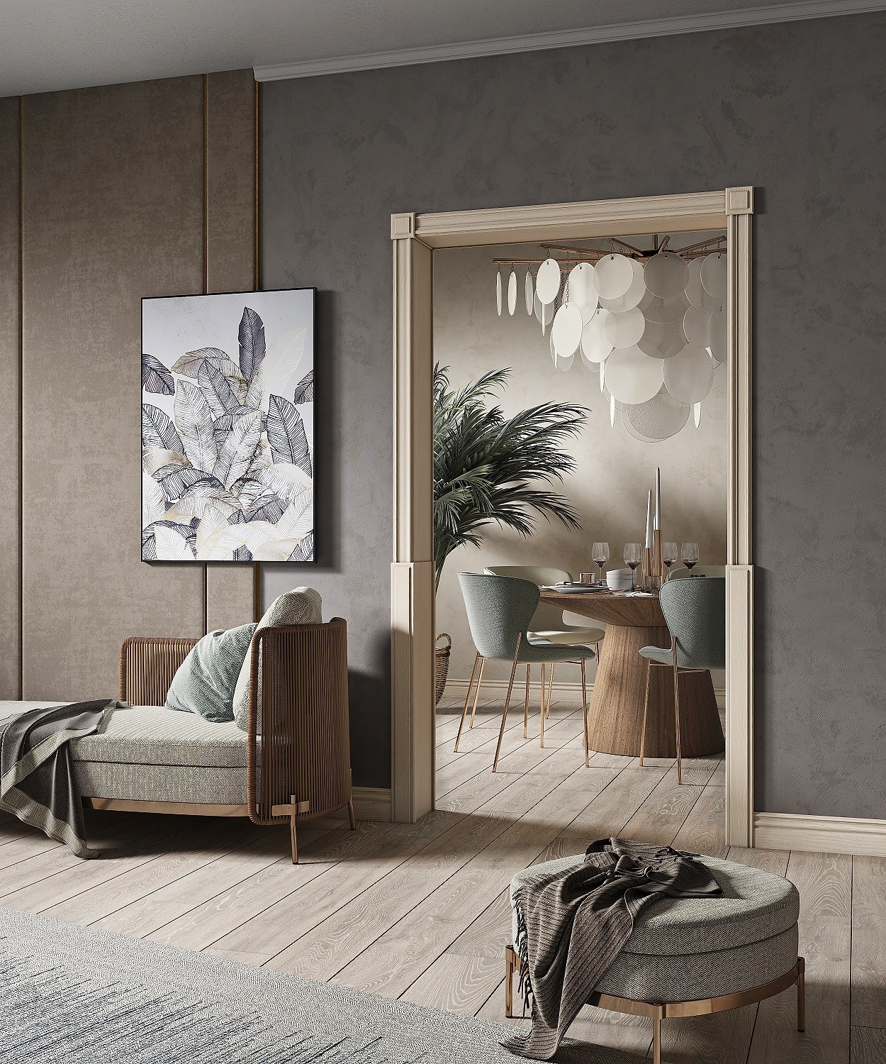 Межкомнатная арка современного дизайна типа Портал, что позволяет монтировать в неподготовленный дверной проём. Она состоит из отдельных элементов-модулей и поставляется в единой упаковке.