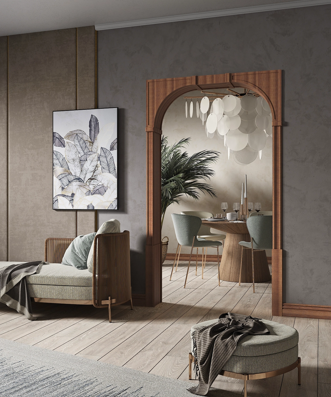 Межкомнатная арка современного дизайна с прямоугольной внешней стороной свода, что позволяет монтировать в неподготовленный дверной проём.