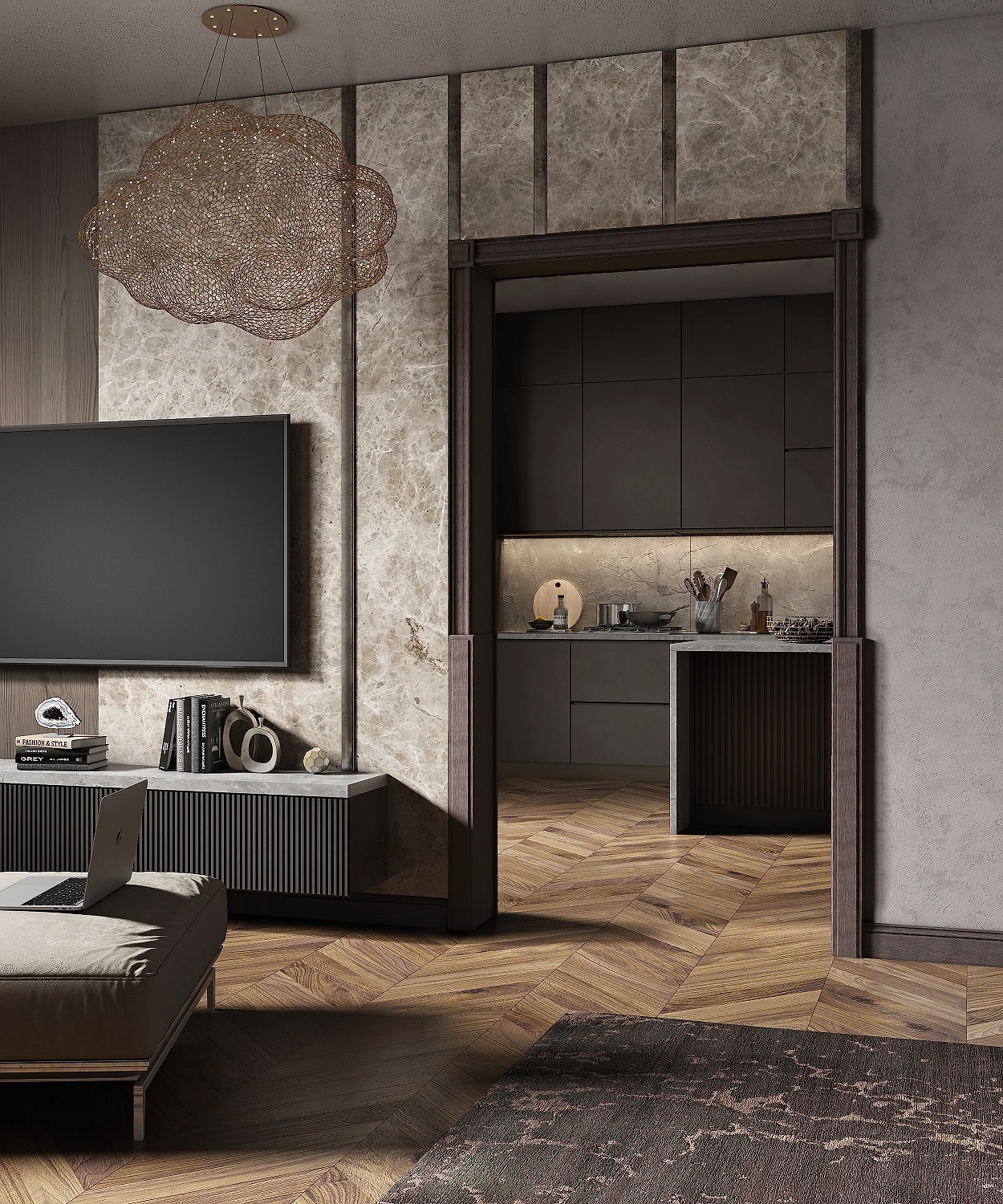 Межкомнатная арка современного дизайна типа Портал, что позволяет монтировать в неподготовленный дверной проём. Она состоит из отдельных элементов-модулей и поставляется в единой упаковке.