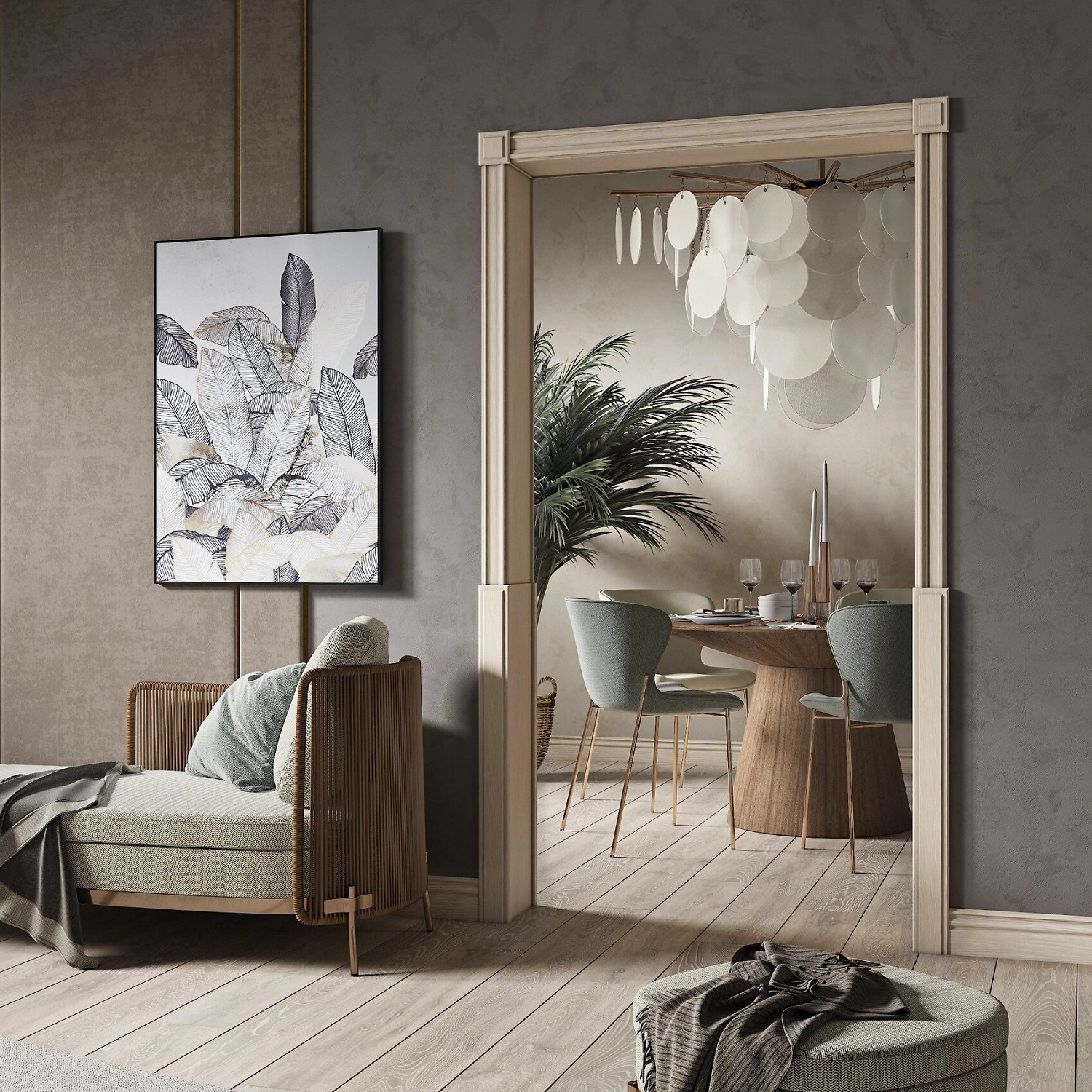 Межкомнатная арка современного дизайна типа Портал, что позволяет монтировать в неподготовленный дверной проём. Она состоит из отдельных элементов-модулей и поставляется в единой упаковке.