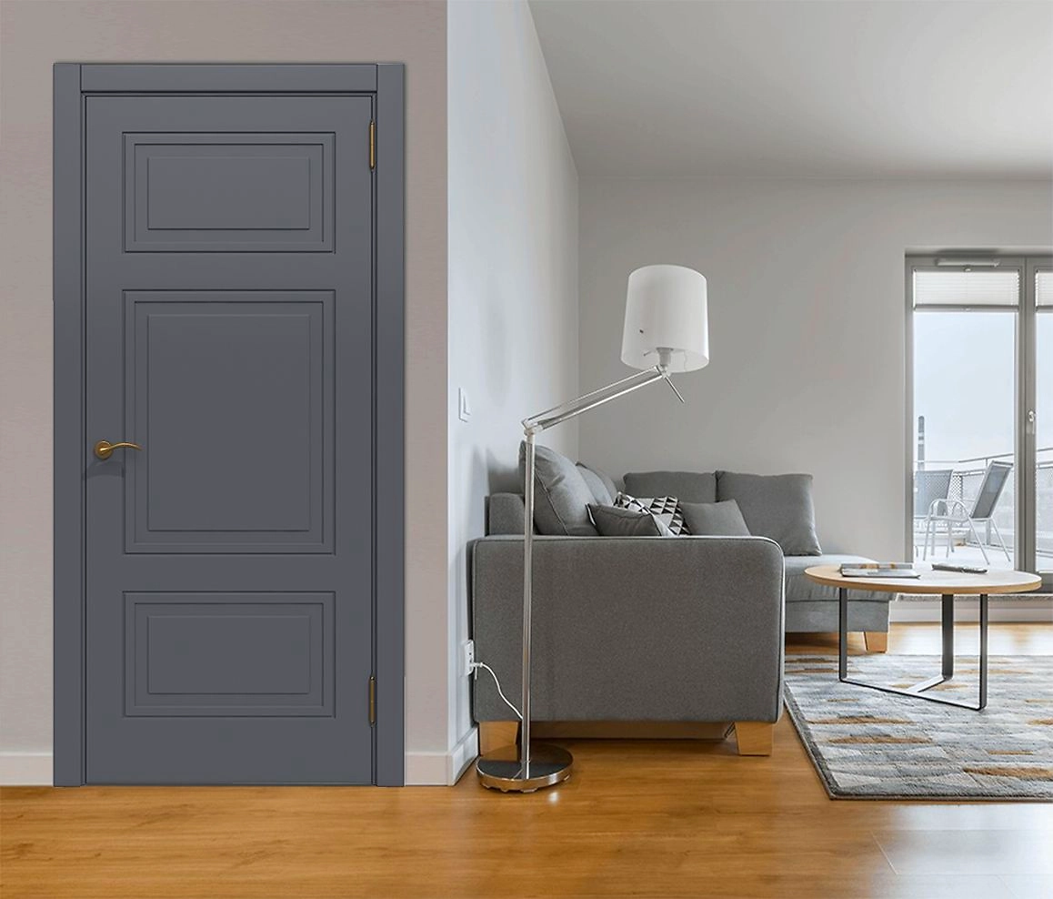 Глухое дверное полотно Париж покрыто несколькими слоями эмали изысканного графитового цвета. Полотно с традиционным трехфиленчатым дизайном - идеальное решение для оформления дверного проема в современном интерьере.