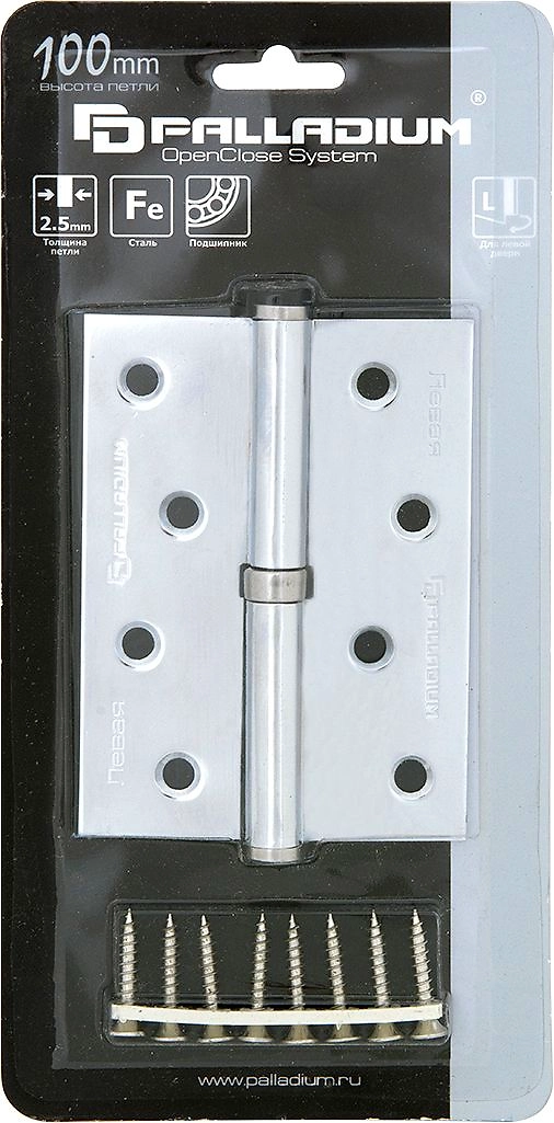 В комплекте: съемная врезная петля Palladium N 613-S-4 левая (1 шт.), шурупы в цвет (8 шт.)