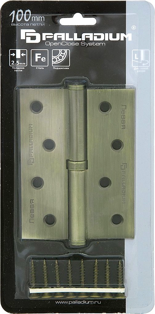 - Cъемная врезная петля Palladium N 613-S-4 левая (1 шт.), шурупы в цвет (8 шт.).