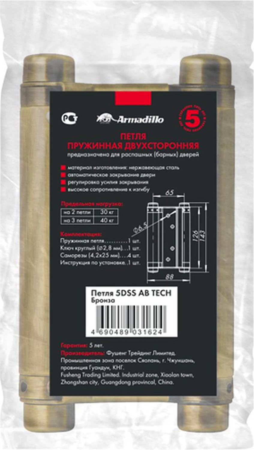 Дверная петля универсальная накладная Armadillo 5DSS 125х86 мм бронза
