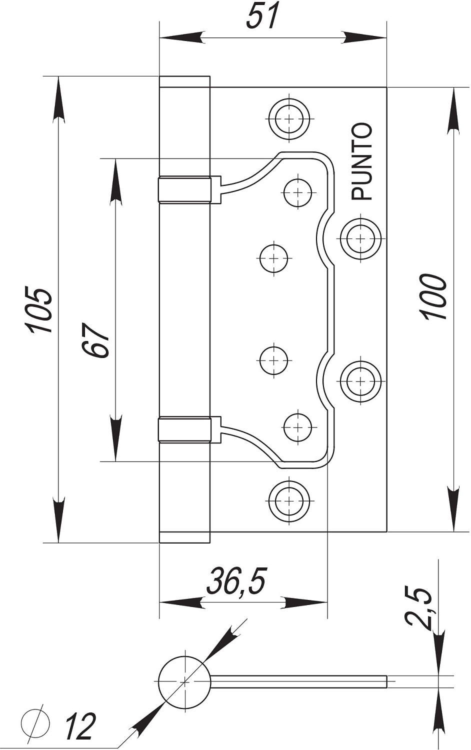 Универсальная дверная петля без врезки Punto 200-2B/HD изготовлена из стали, подходит для дверей левого и правого открывания.