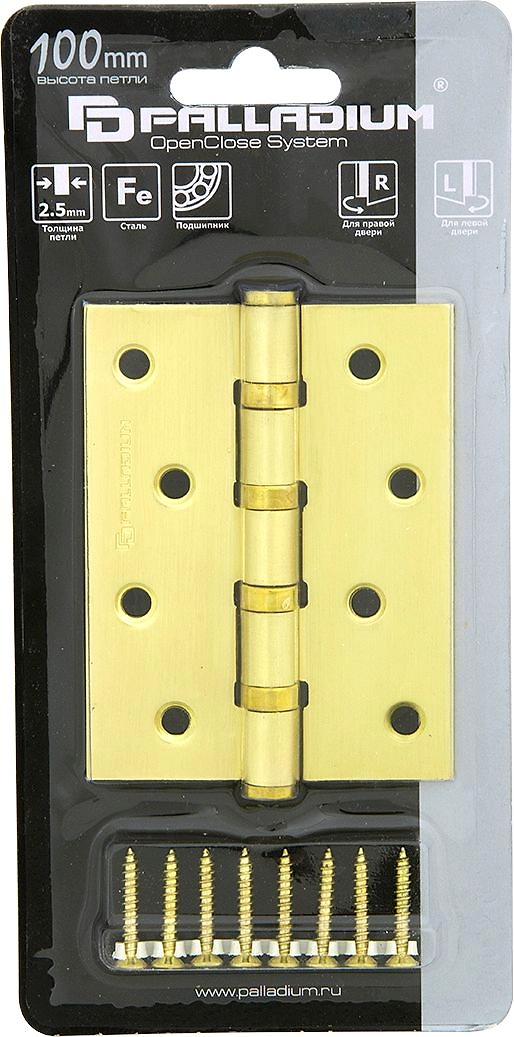Дверная петля универсальная врезная Palladium 100х75х2,5 мм матовое золото
