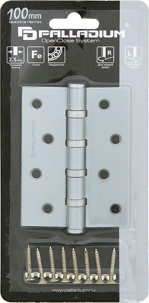 Дверная петля универсальная врезная Palladium 100х75х2,5 перламутровый хром