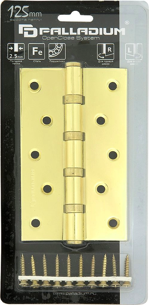 В комплекте: универсальная врезная петля Palladium N 500 C-S-5 (1 шт.), шурупы в цвет (10 шт.)