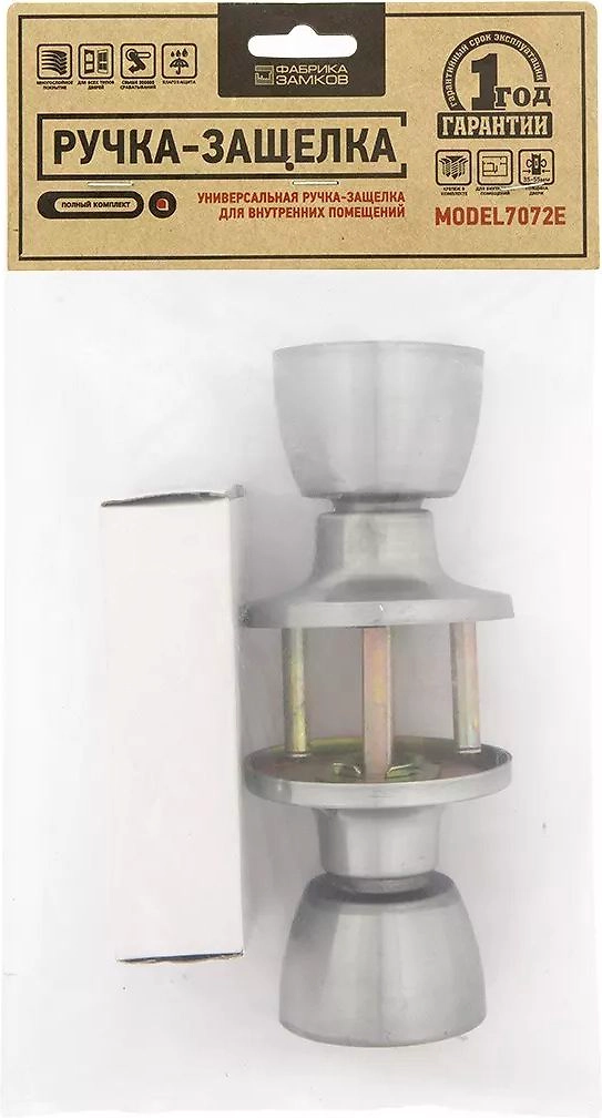 Ручка-защелка без запирания FZ 7072E от производителя Фабрика замков. Подходит для левых и правых межкомнатных дверей. Требуемая толщина дверного полотна: от 35 до 55 мм.