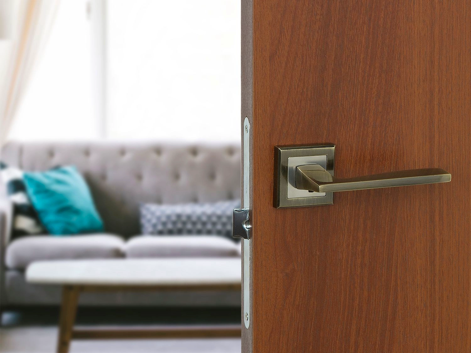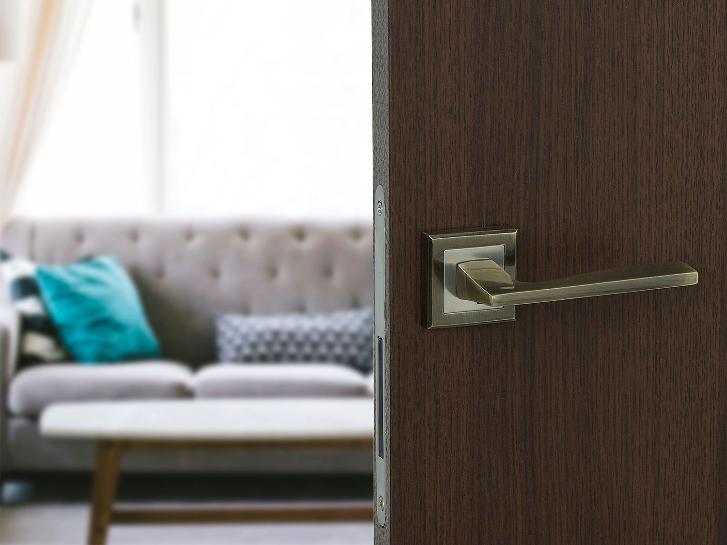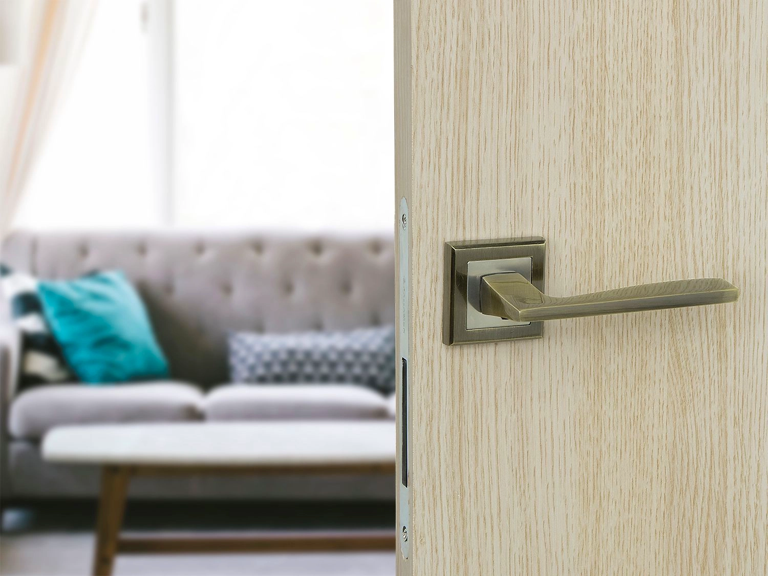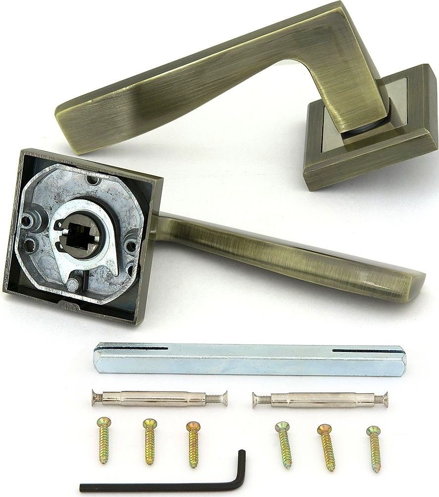 FZ 16 S AB – эффектная дверная ручка на ультрамодной квадратной розетке от "Фабрики замков". Отлично дополнит гладкое щитовое или царговое полотно в стиле "хай-тек" или "модерн".