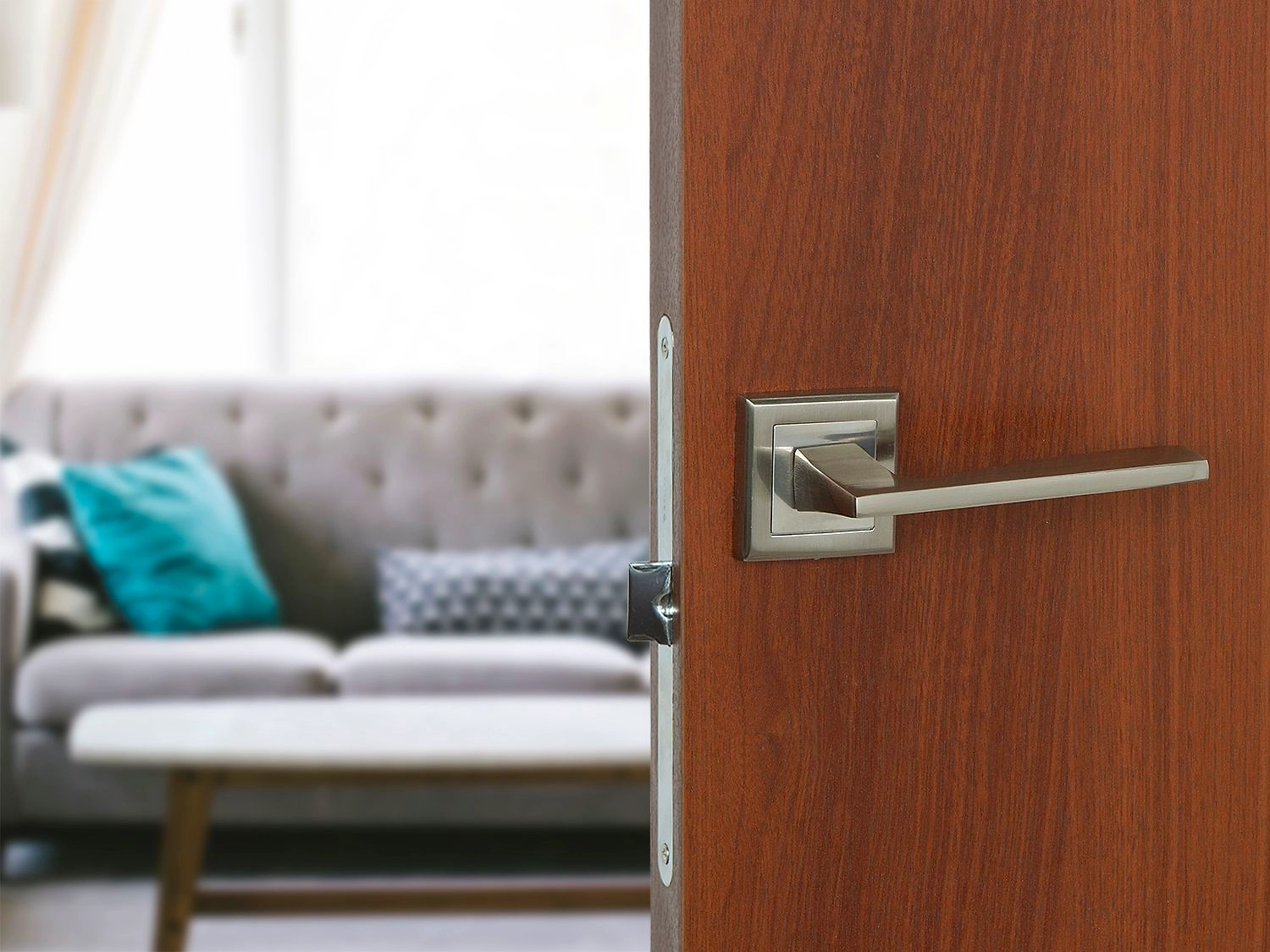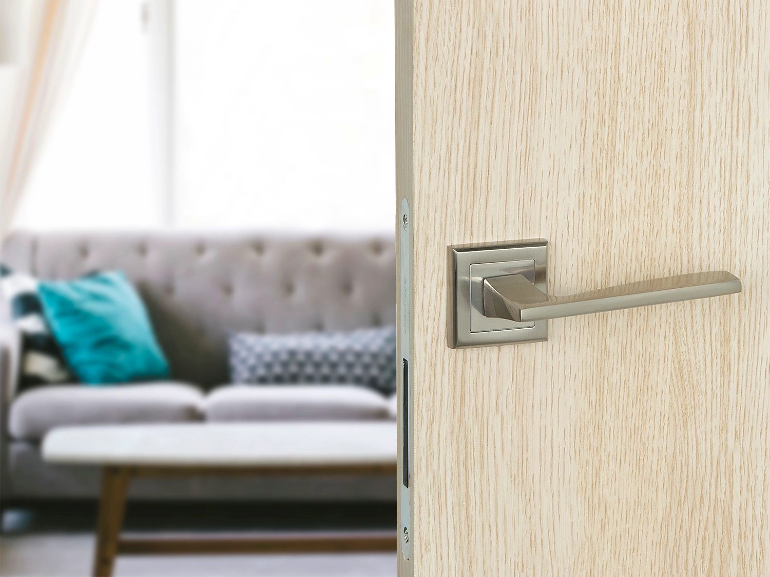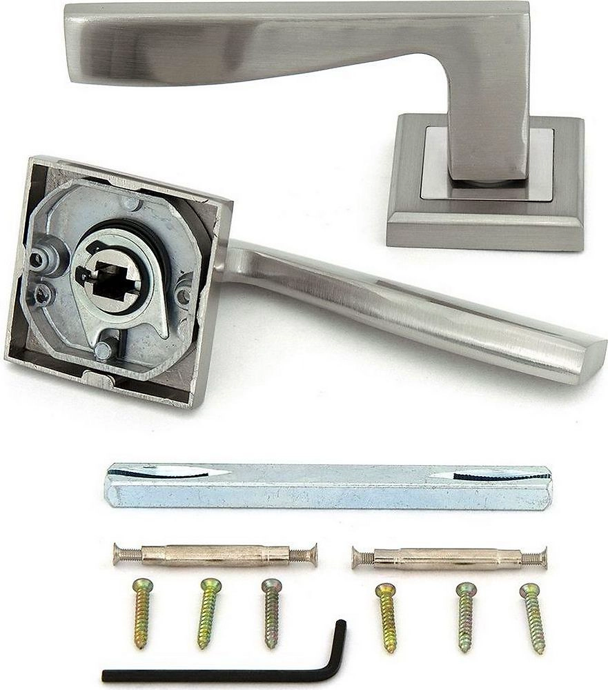 FZ 16 S SN – эффектная дверная ручка на ультрамодной квадратной розетке от "Фабрики замков". Отлично дополнит гладкое щитовое или царговое полотно в стиле "хай-тек" или "модерн".