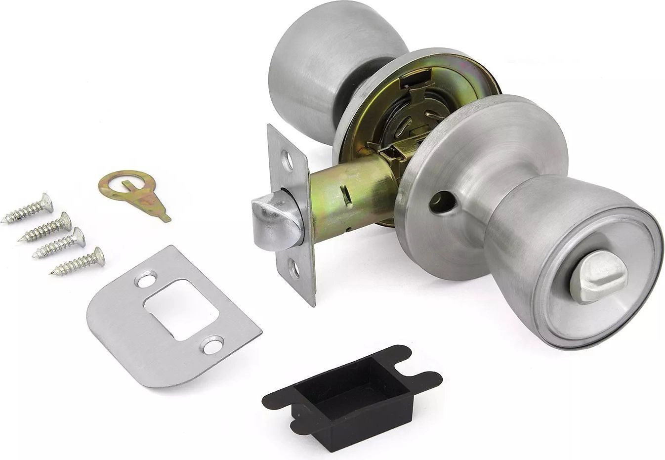 В этой модификации (BK) ручка-защелка имеет фиксатор-завертку, что позволяет запирать дверь изнутри (вариант для ванной, туалета или гардеробной). На случай экстренных ситуаций на внешней ручке предусмотрено отверстие для разблокировки механизма монетой или другим плоским предметом.