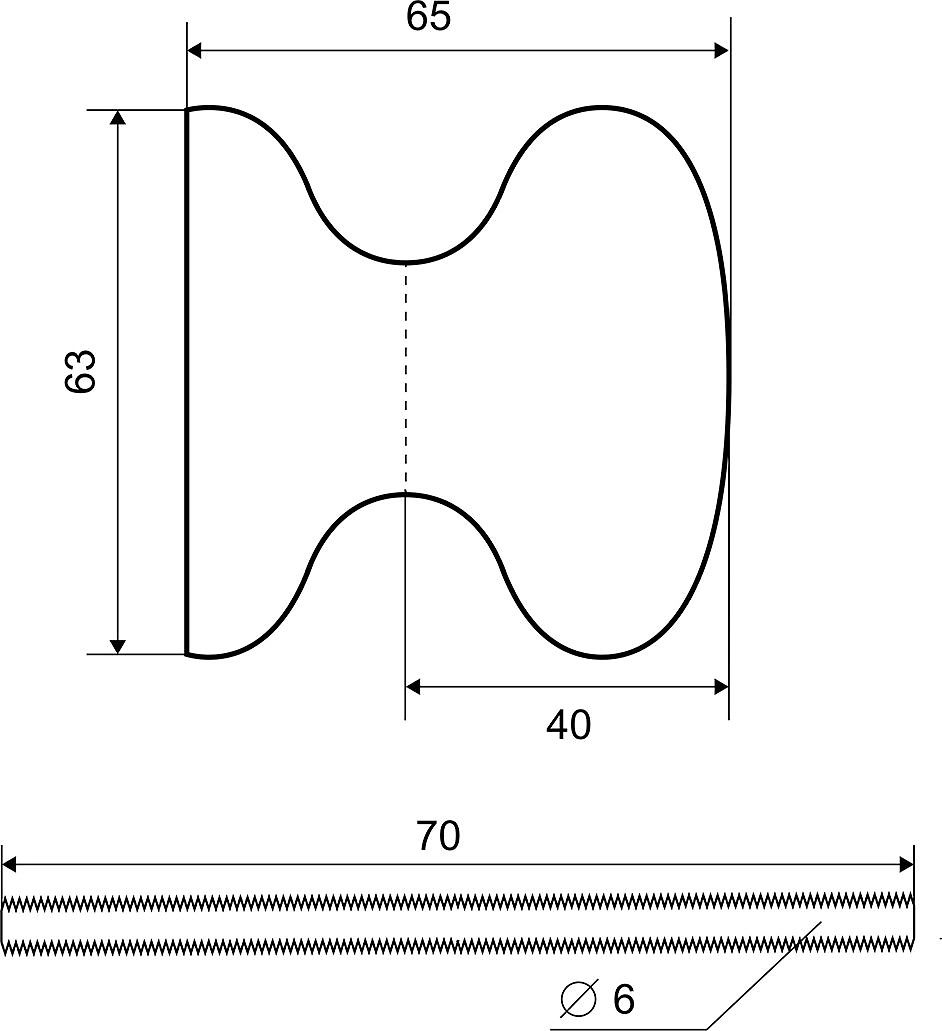 Ручка имеет 2 половины. Крепится на дверь, в которой проделано насквозь отверстие, одним удлиненным винтом.