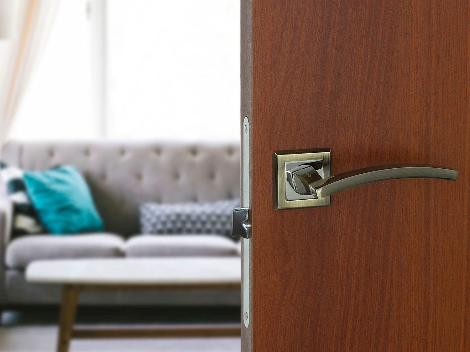 Palladium A Tesoro – двухцветная дверная ручка для входных и межкомнатных дверей. Отлично подходит к современным деревянным и металлическим полотнам.