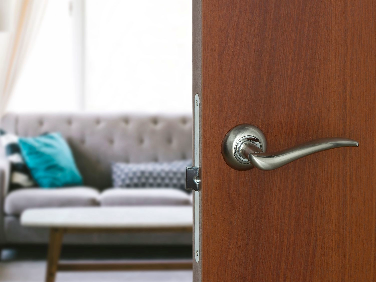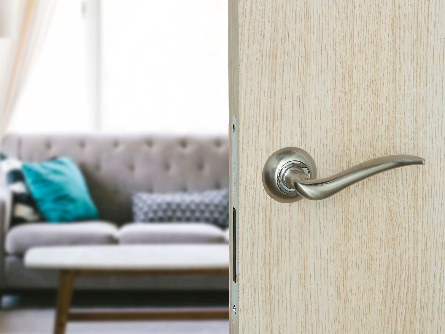 Дверная ручка Mistik из коллекции Palladium Revolution. Кокетливо изогнутый рычаг следует канонам неоклассицизма 1930-х, а контрастный фланец добавляет нотки современности.