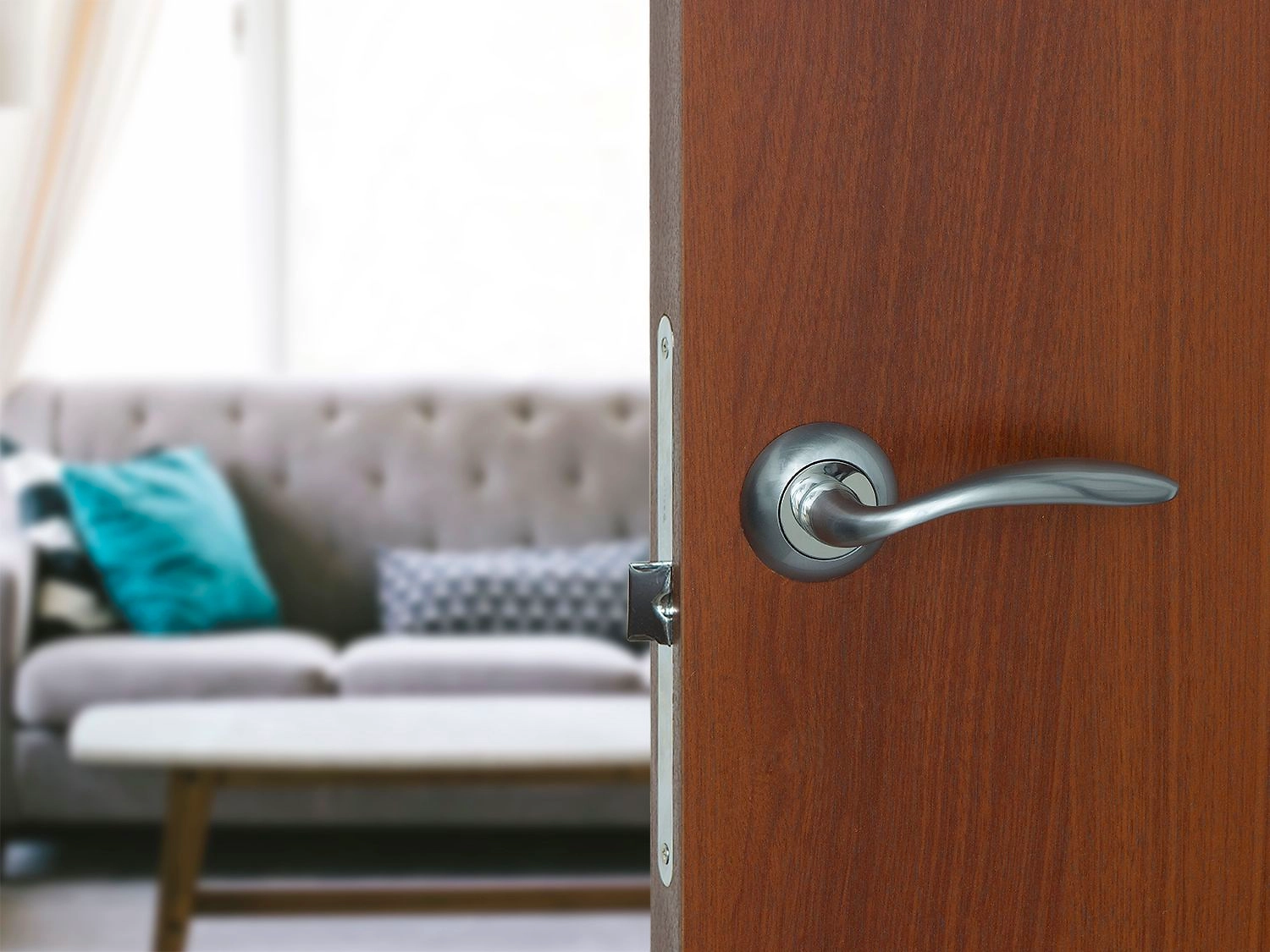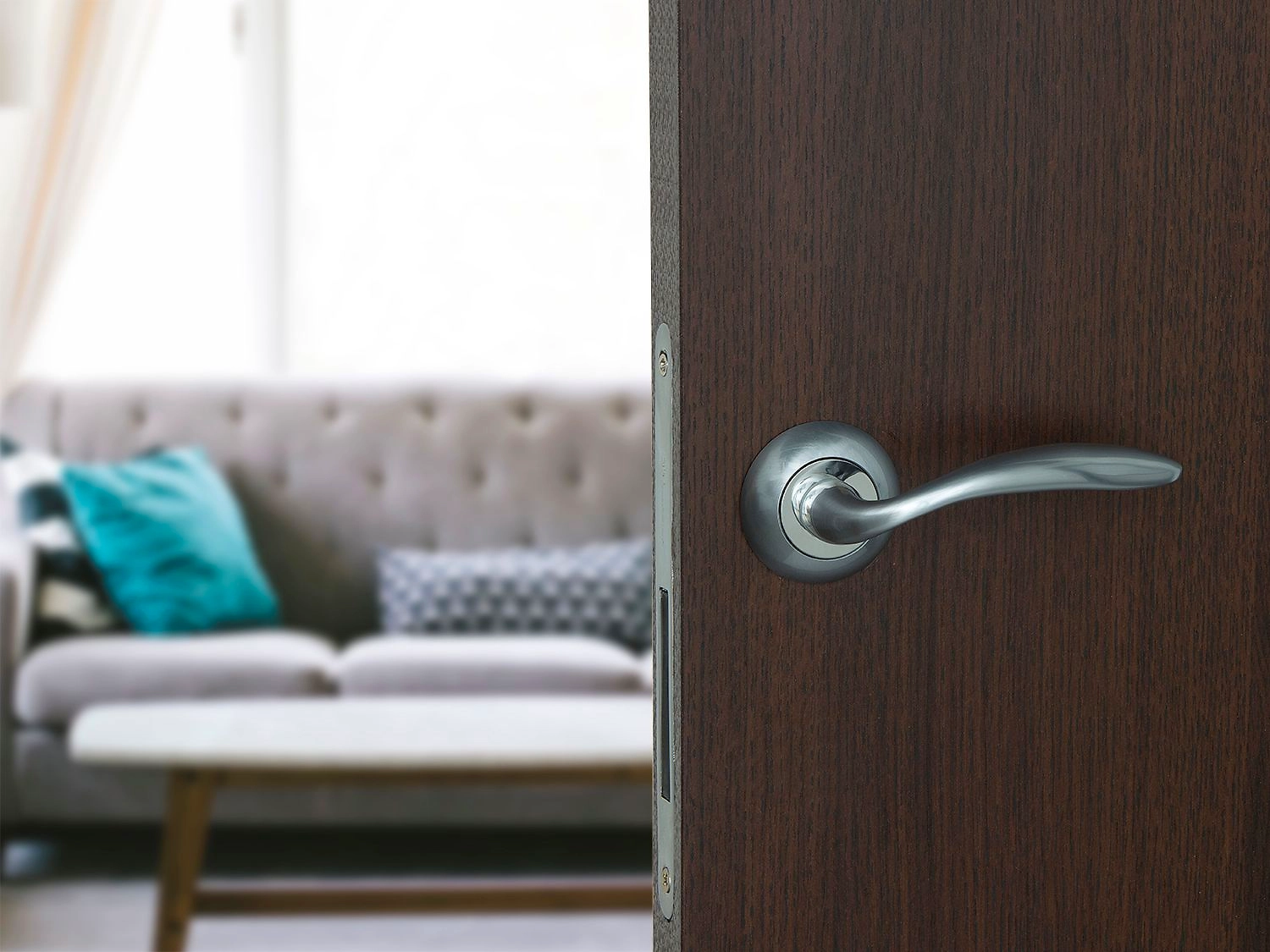 Serena – миниатюрная и универсальная дверная ручка. Если вынести за скобки двери хай-тек, сложно найти полотно, с которым она не заиграет.