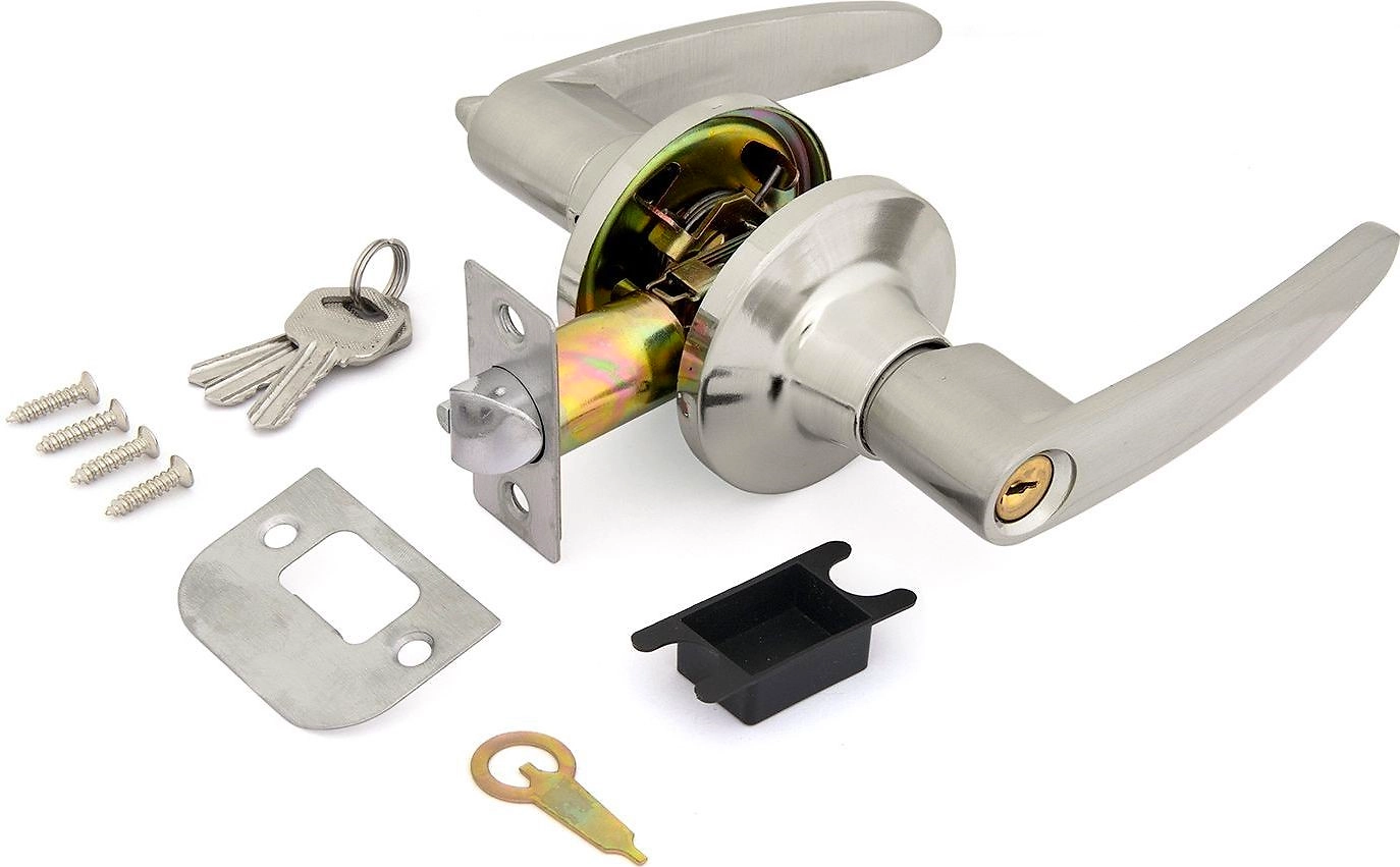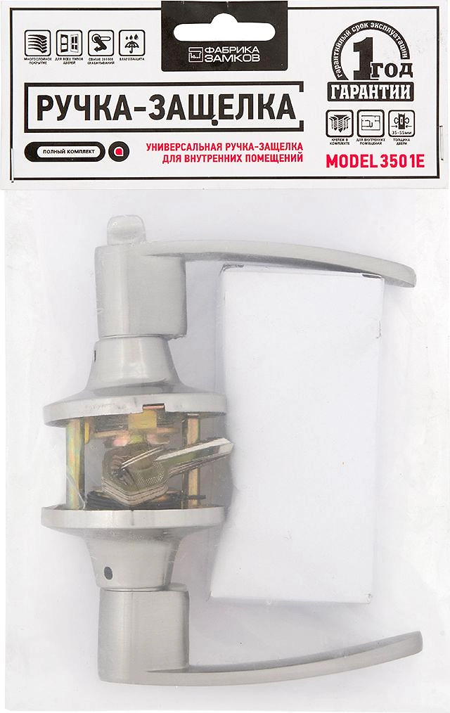 Дверная ручка-защелка ФАБРИКА ЗАМКОВ 3501E с ключом и фиксатором матовый никель