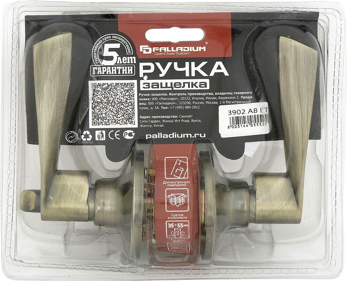 Дверная ручка-защелка PALLADIUM 3902 AB ET с ключом и фиксатором античная бронза