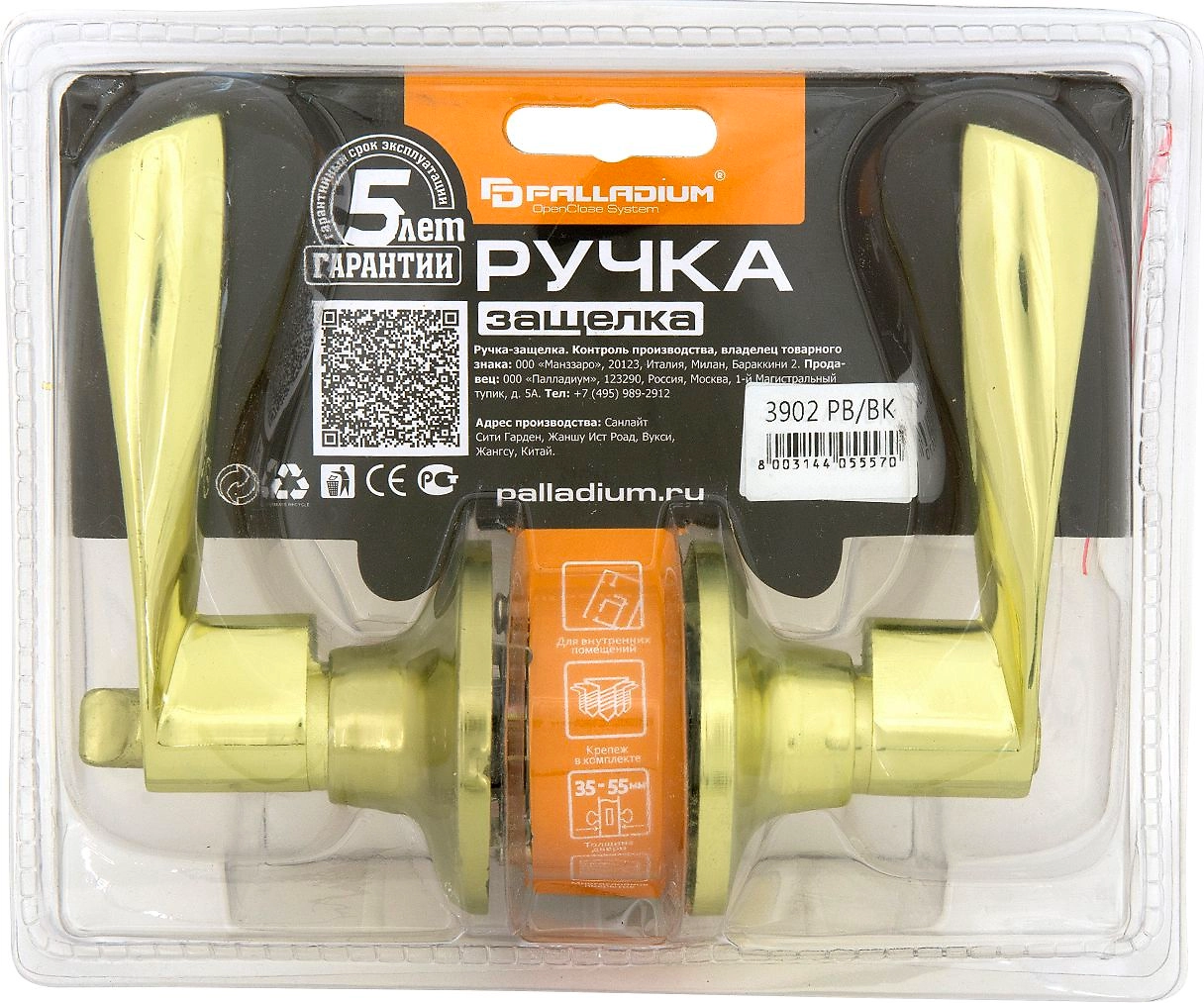 Дверная ручка-защелка PALLADIUM 3902 PB BK с фиксатором золото