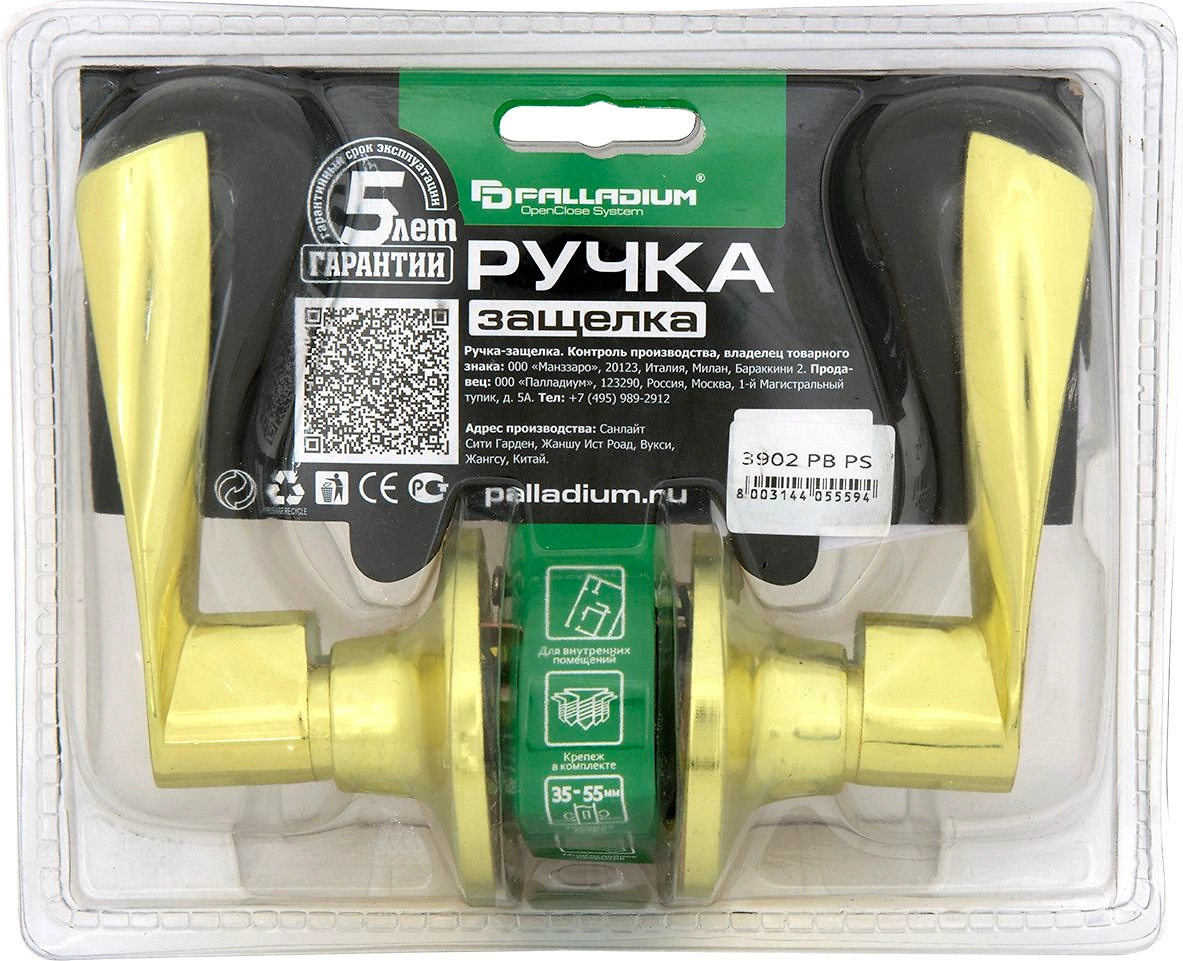 Дверная ручка-защелка PALLADIUM 3902 PB PS без фиксатора золото