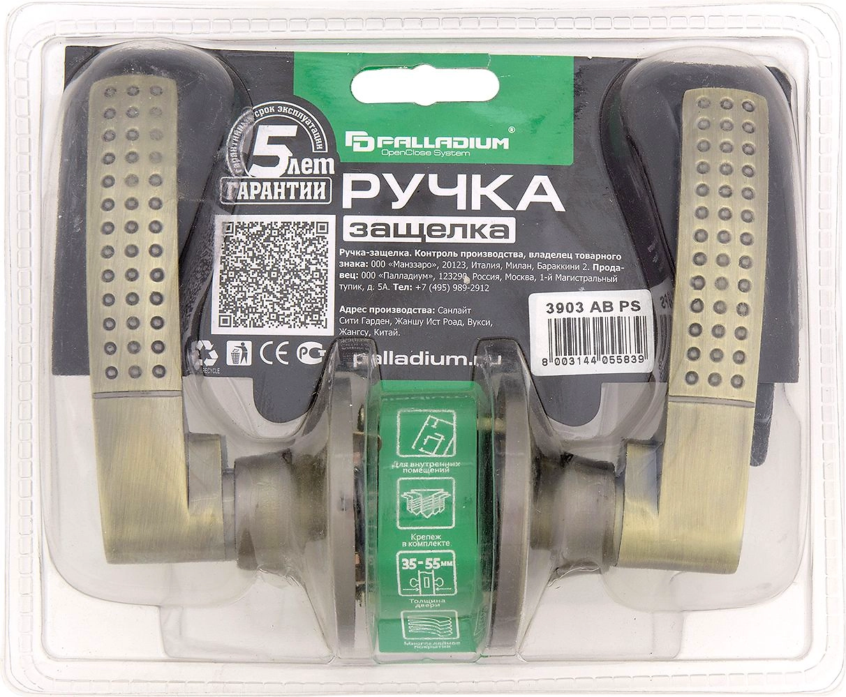 Дверная ручка-защелка PALLADIUM 3903 AB PS без фиксатора античная бронза