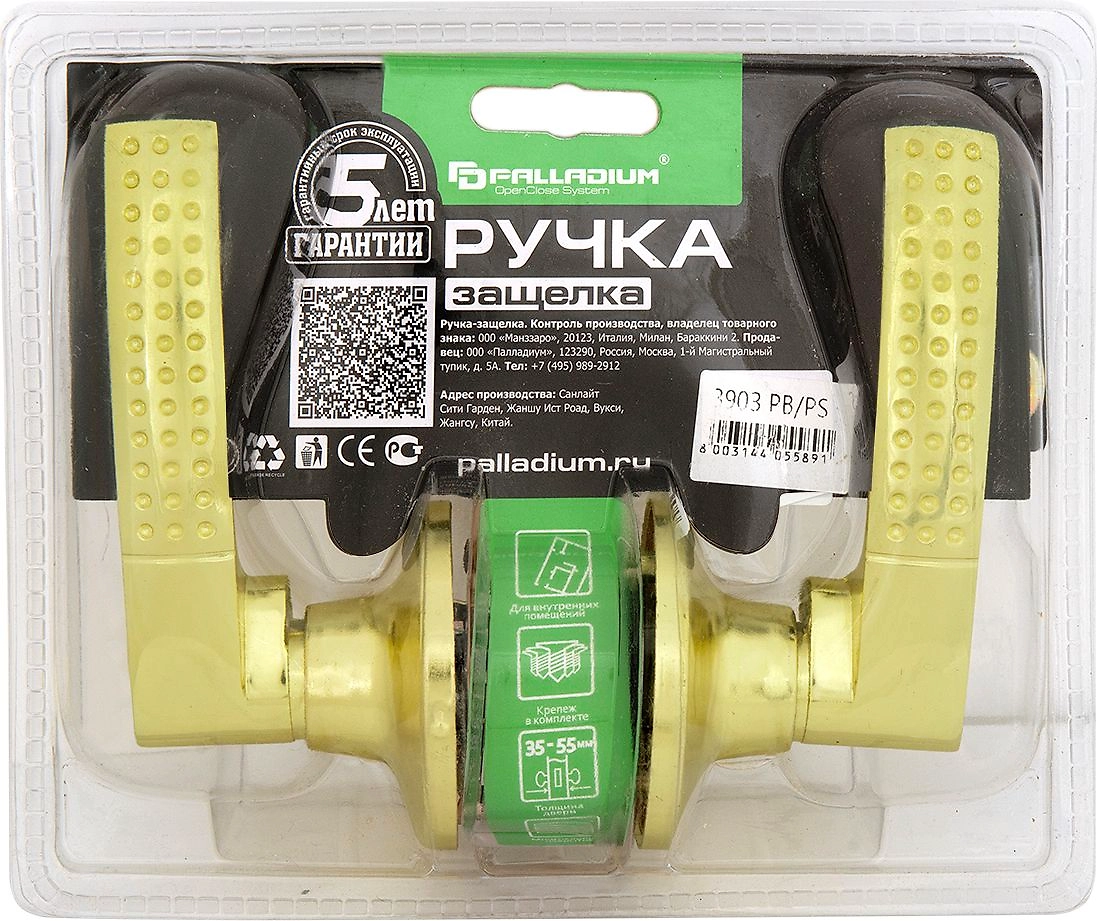 Дверная ручка-защелка PALLADIUM 3903 PB PS без фиксатора золото
