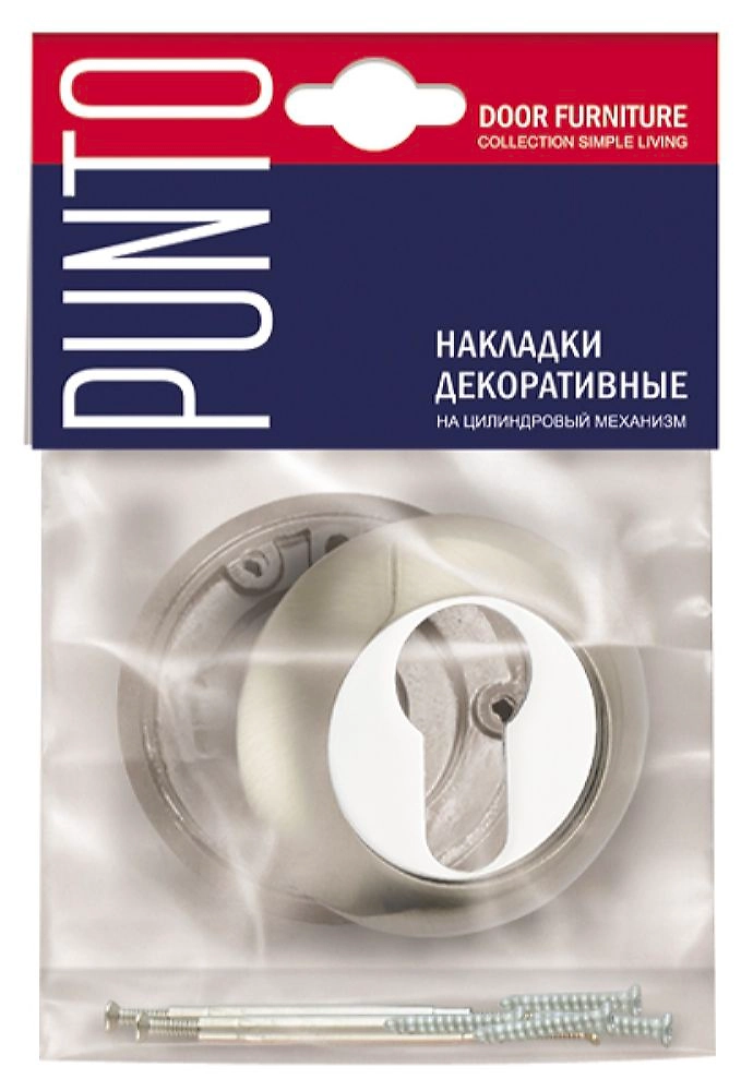 Накладки на круглом основании Punto ET серии TL из коллекции SIMPLE LIVING под цилиндровый механизм, предназначены для декорирования замочной скважины. Материал изготовления: ZAMAK (сплав цинка, алюминия, магния и меди). Гальваническое покрытие прошло тест на устойчивость к коррозии в соляном тумане и соответствует 1 классу ГОСТ. Цвет: матовый никель/хром. Крепежная фурнитура в комплекте.
