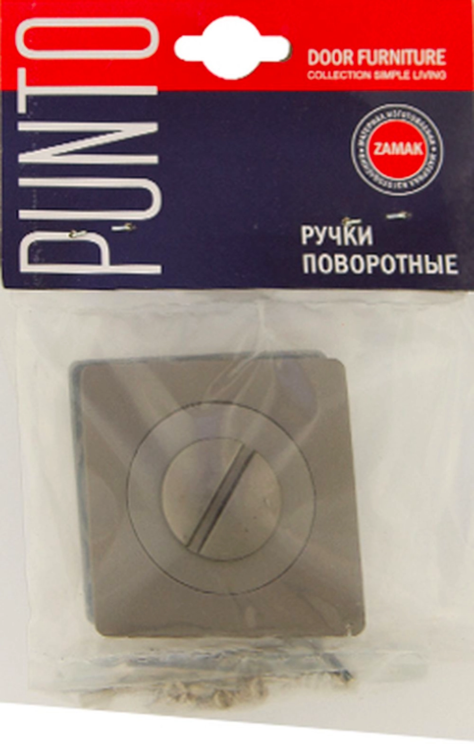 Поворотные ручки на квадратном основании Punto BK6 серии ZQ из коллекции SIMPLE LIVING подходят для установки на внутренние входные и межкомнатные двери. Материал изготовления: ZAMAK. В комплект входят: соединительный квадрат 6x80 мм, винты.