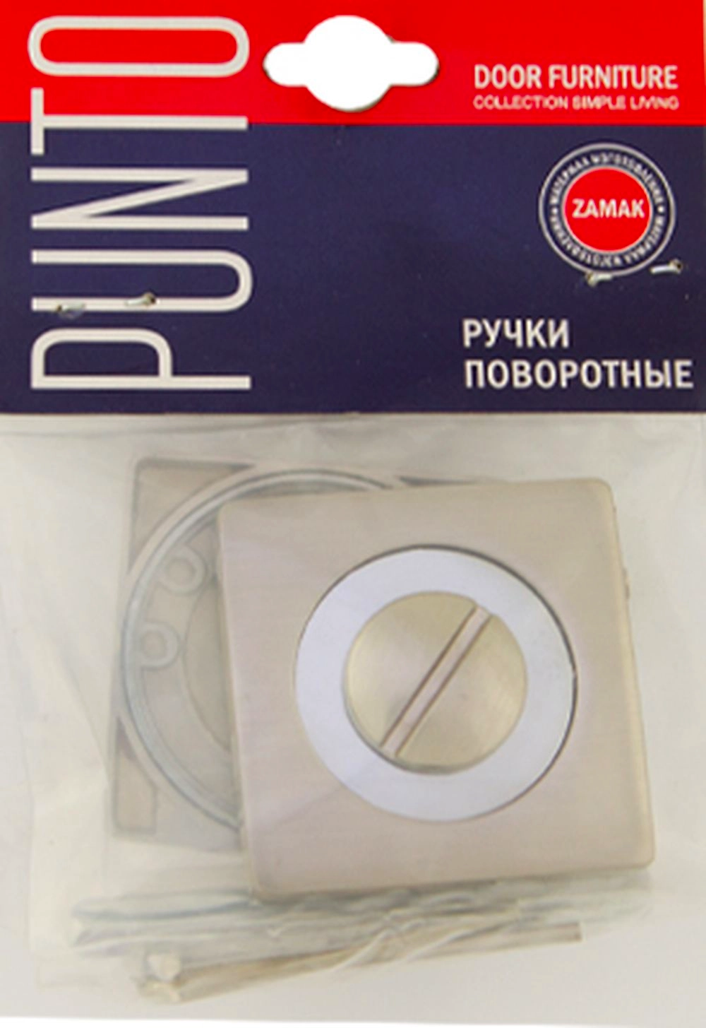 Поворотные ручки на квадратном основании Punto BK6 серии ZQ из коллекции SIMPLE LIVING подходят для установки на внутренние входные и межкомнатные двери. Материал изготовления: ZAMAK. В комплект входят: соединительный квадрат 6x80 мм, винты.