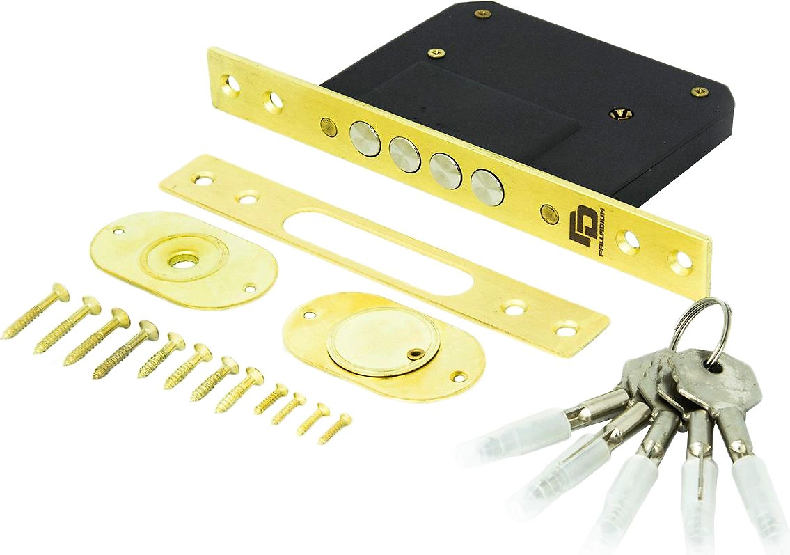 Врезной замок для межкомнатных и входных дверей. Качество гальванического покрытия подтверждено тестом на устойчивость в камере соляного тумана - более 72 часов. Длина крестообразных ключей адаптирована к использованию с броненакладками. В комплекте замок,ответная планка,декоративные накладки на ключевое отверстие,шурупы и 5 крестообразных ключей