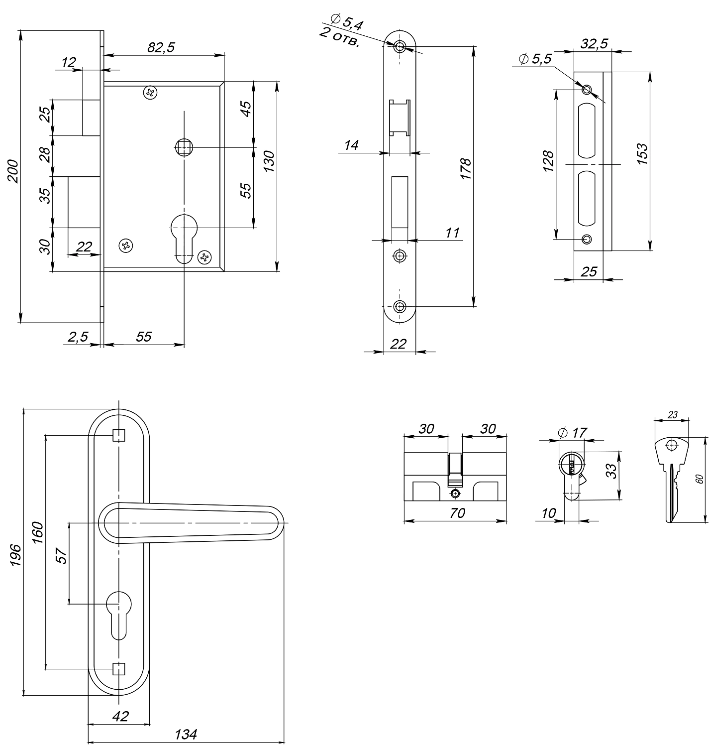 Замок имеет популярные посадочные размеры.Ручки оснащены подпружиненным механизмом.Комплектуется цилиндровым механизмом 70 мм, ручка из алюминия, покрыта краской