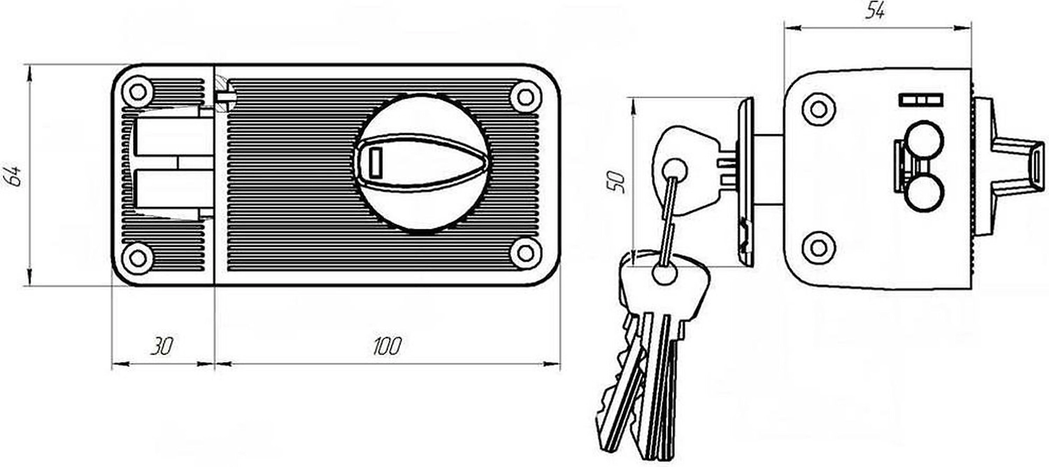 ЗН2-3 - накладной замок с цилиндровым пластинчатым механизмом секрета. Рекомендован для деревянных и металлических дверей. Имеется блокировка открывания двери ключом снаружи.