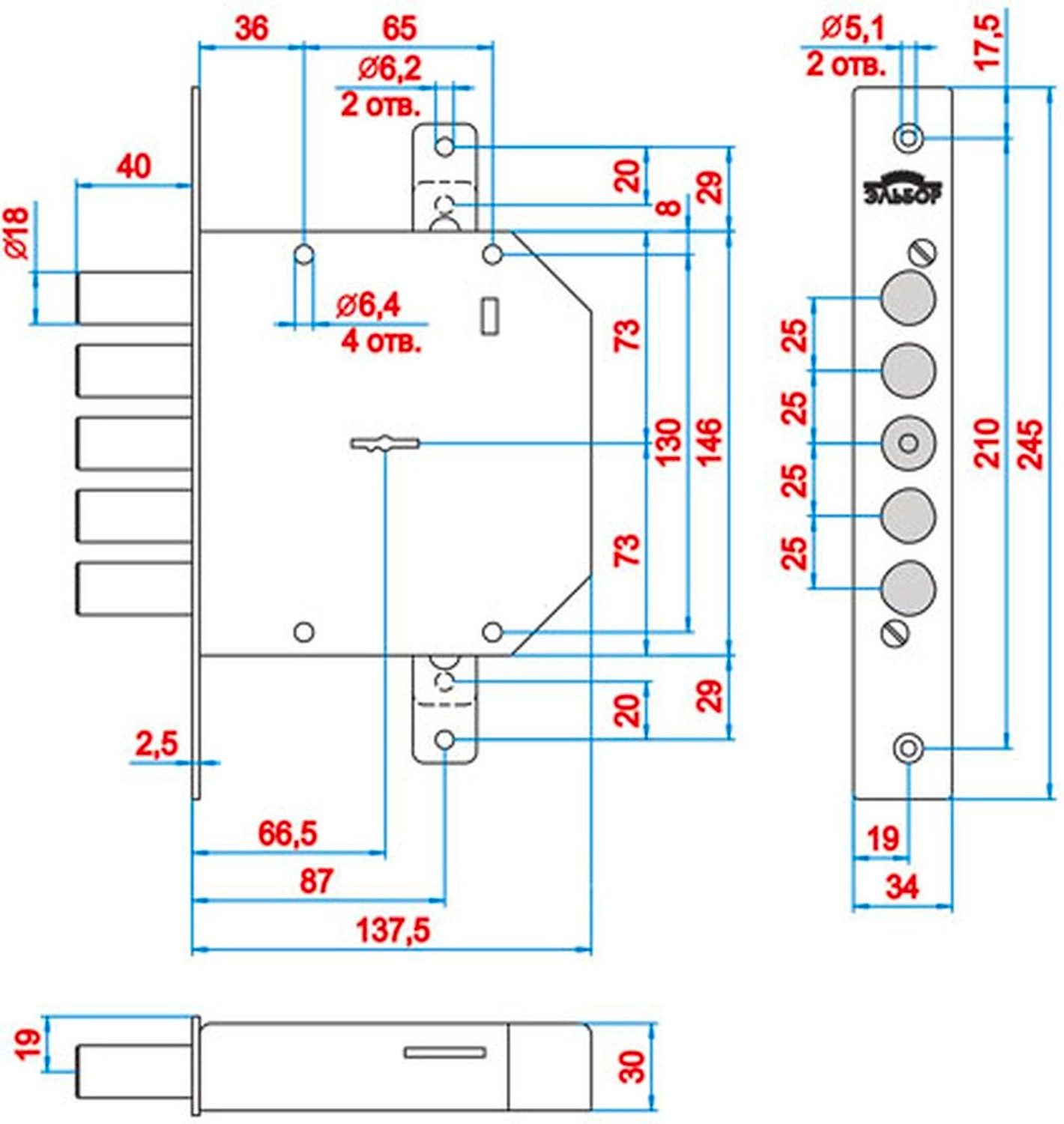 Дверной замок врезной ЭЛЬБОР ГРАНИТ 1.06.01. хром
