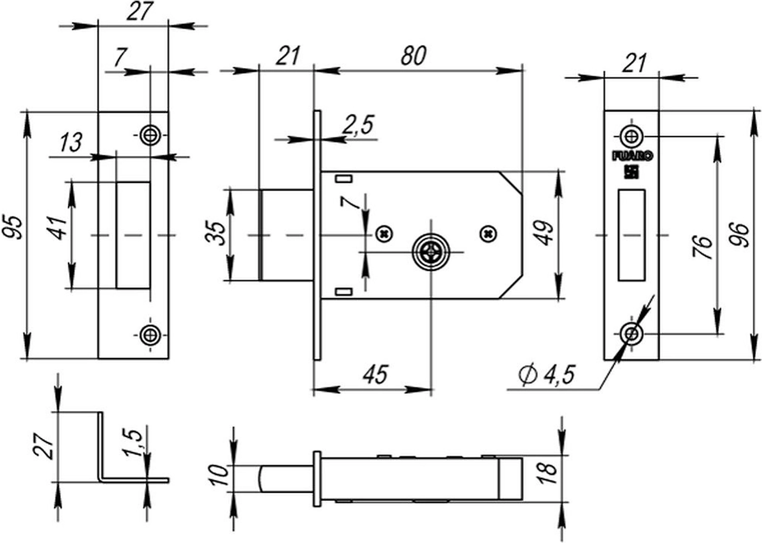 Врезной замок Fuaro 200 F с крестовым цилиндровым механизмом. Подходит для установки на деревянные и легкие металлические двери.