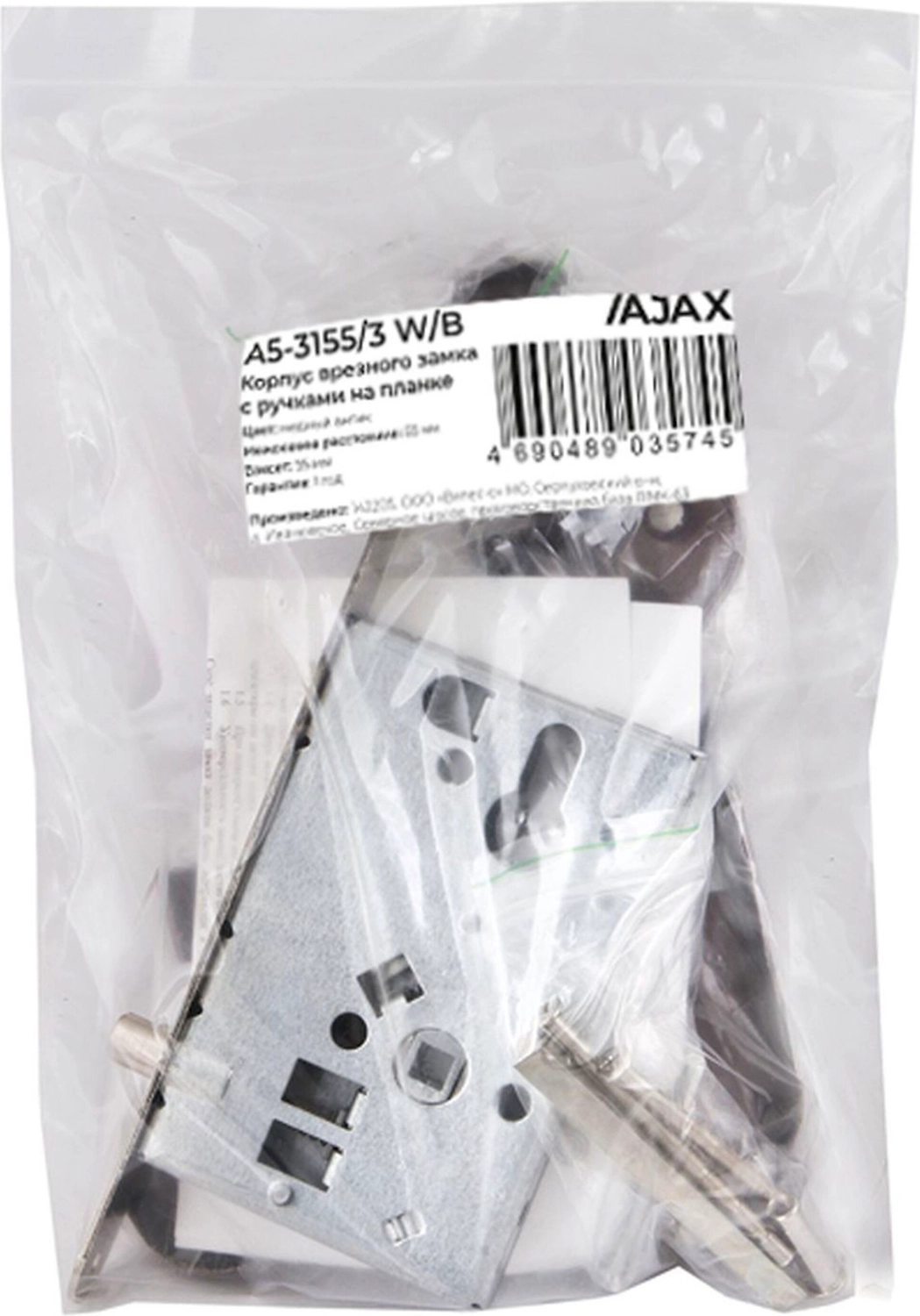 Корпус врезного замка с защелкой и фалевыми ручками на планке KIT А5-3155/3 W/B предназначен для установки на двери общественных и жилых помещений.
