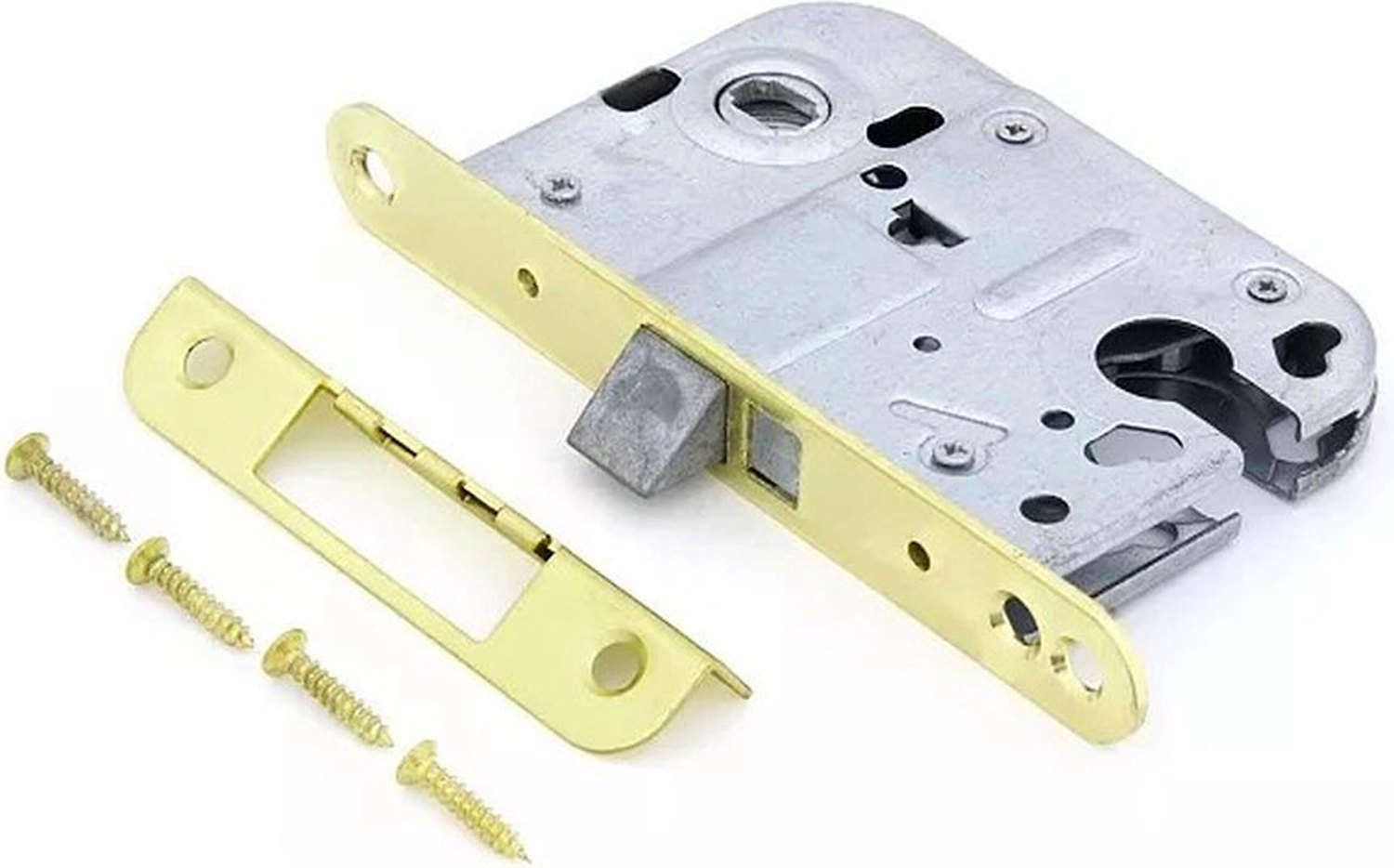 Корпус замка L 008 предназначен для межкомнатных и кабинетных дверей. Механизм оснащен износостойким металлическим язычком, обеспечивающим долгий срок службы. Механизм оснащен отверстием для установки раздельной фурнитуры.Тип защелки: универсальная (правая/левая) .Упаковка: пакет .В комплект поставки входит: корпус замка, ответная планка, шурупы.Цилиндровый механизм в комплект не входит.
