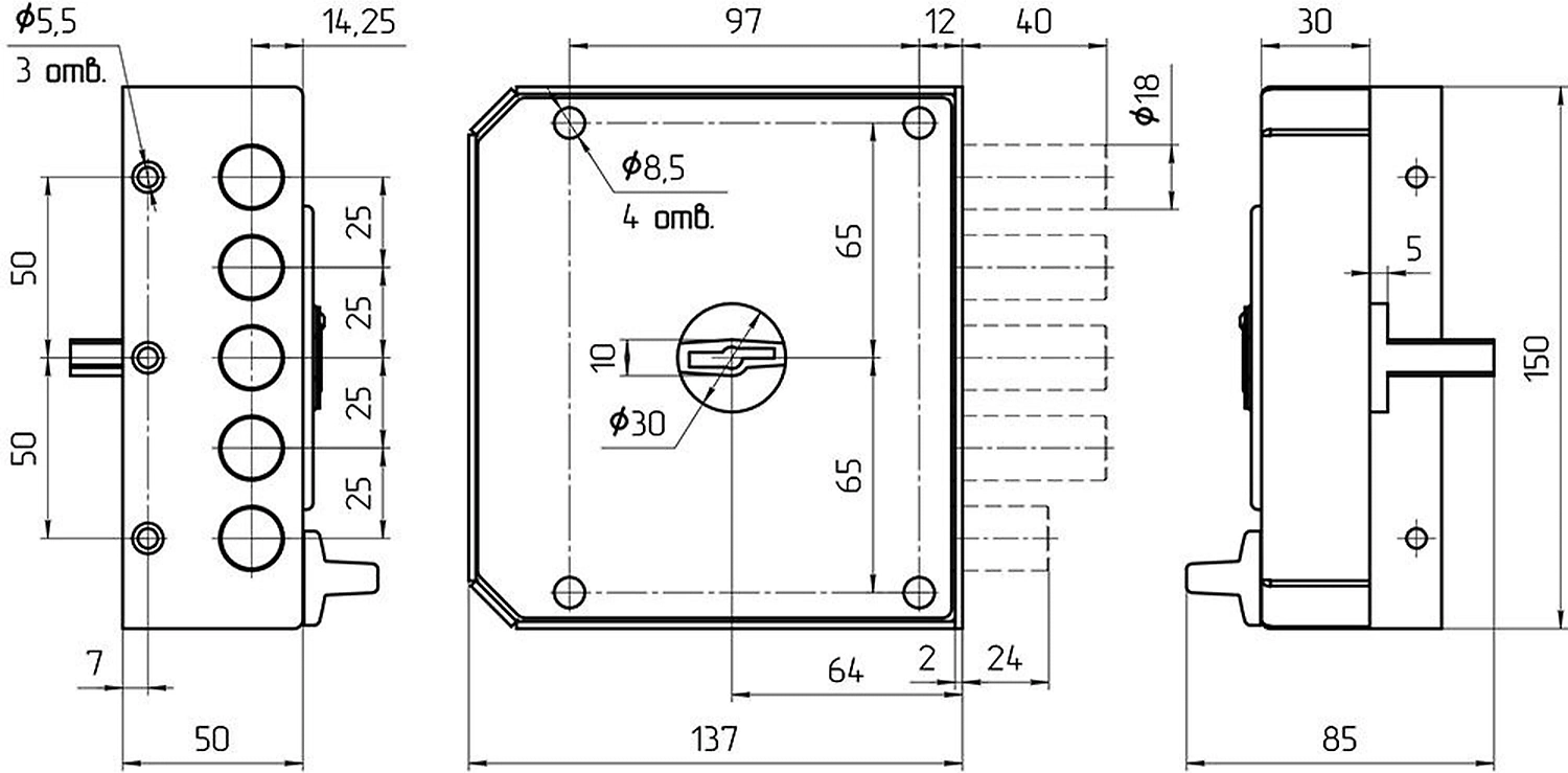 Обращаем внимание на то, что конструкция модели ЗН4 032.0.1 не предусматривает наличие защёлки. Поэтому данный замок рекомендуется в качестве второго запирающего устройства двери.