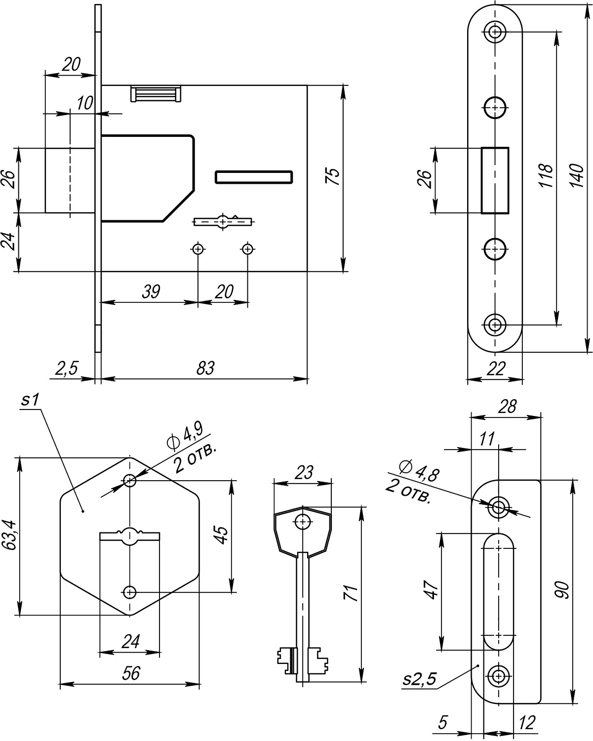 Замок врезной 4-х сувальдный ЗВ8-4С/03 рекомендован для установки в двери толщиной 40-50 мм на период ремонта или строительства для дверей в помещениях с невысокими требованиями к охранным свойствам. Замок универсальный, возможна установка как в правые, так и в левые двери. Замок открывается и закрывается изнутри и снаружи ключом. Прямоугольный засов. Замок имеет защиту от высверливания, защиту от отмычек. Изготовлен из высокопрочных материалов. Имеет защитное покрытие.