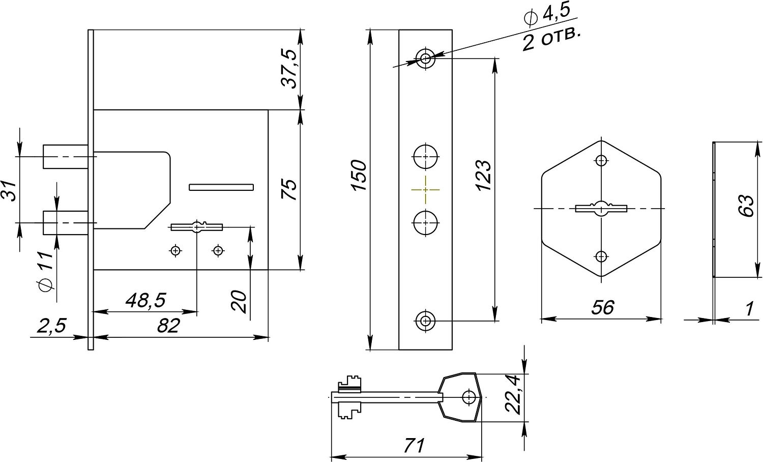 Замок врезной 4-х сувальдный ЗВ8-4С/13 рекомендован для установки в двери толщиной 40-50 мм на период ремонта или строительства для дверей в помещениях с невысокими требованиями к охранным свойствам. Замок универсальный, возможна установка как в правые, так и в левые двери. Замок открывается и закрывается изнутри и снаружи ключом. Засов из двух штырей круглого сечения. Замок имеет защиту от высверливания, защиту от отмычек. Изготовлен из высокопрочных материалов. Имеет защитное покрытие.