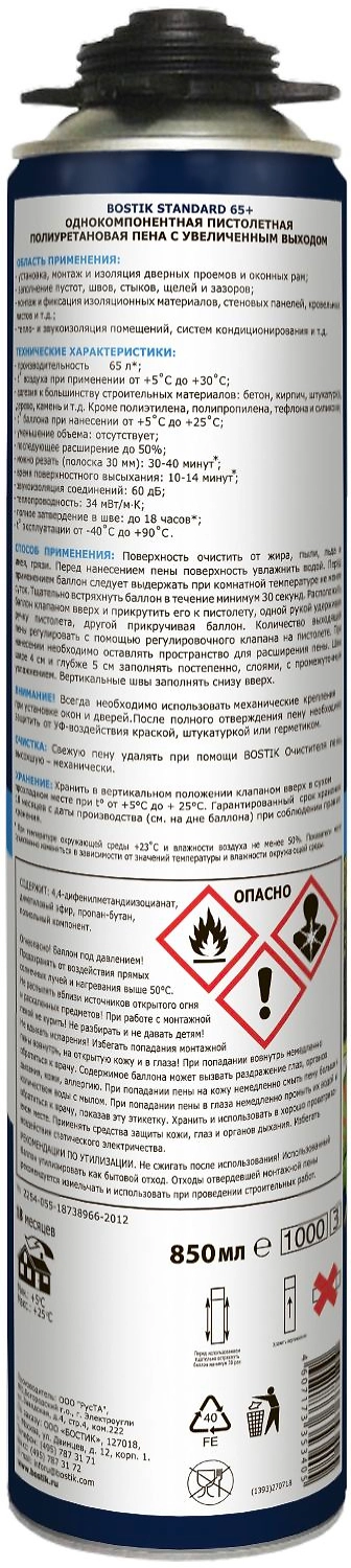 BOSTIK  пена пистолетная полиуретановая Standard 65+, 850 мл