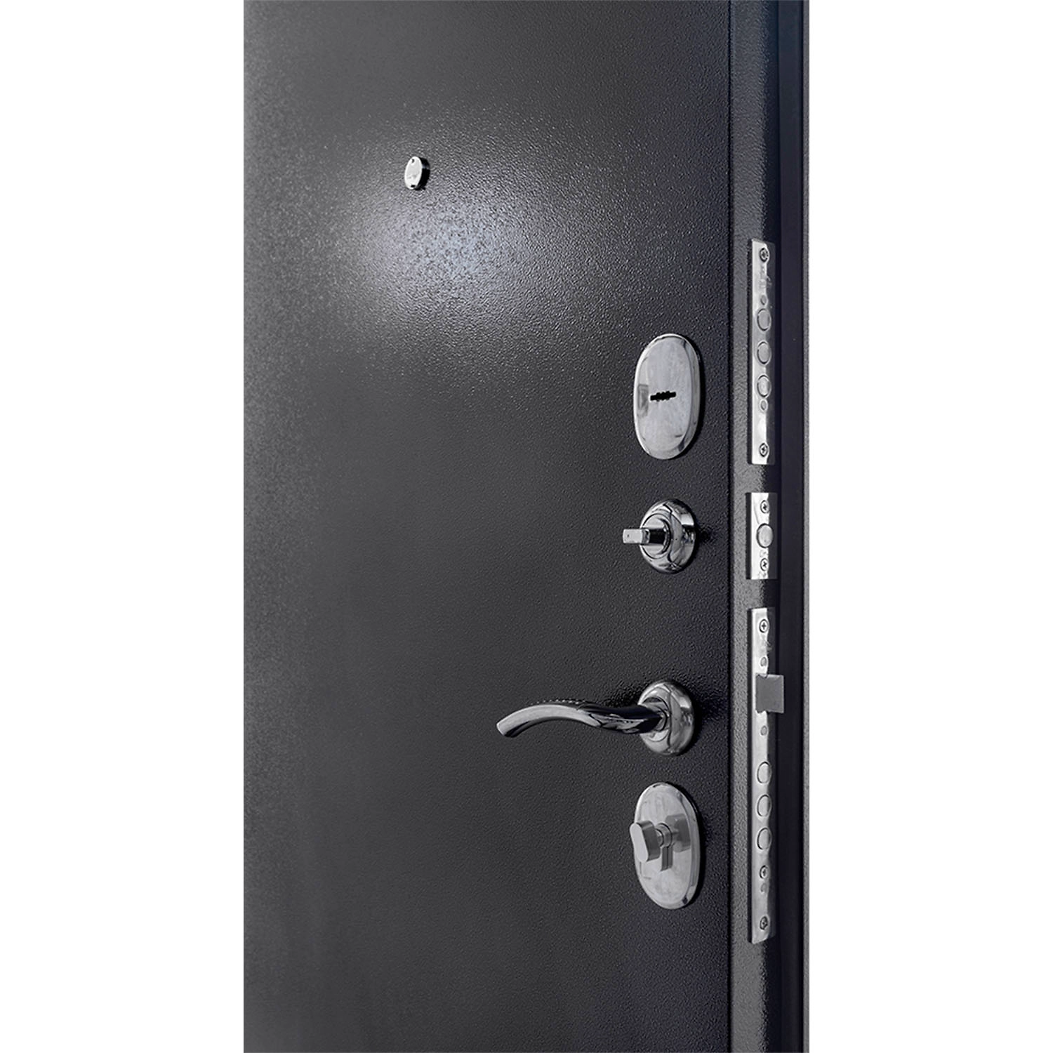 Дверь оснащена двумя замками разного класса, основной цилиндровый, дополнительный сувальдный, что увеличивает взломостойкость самой двери. Ночной сторож (ночная задвижка) обеспечит защиту помещения от проникновения с внутренней стороны квартиры, без возможности открытия двери снаружи. Глазок позволит увидеть посетителя, без открывания самой двери.