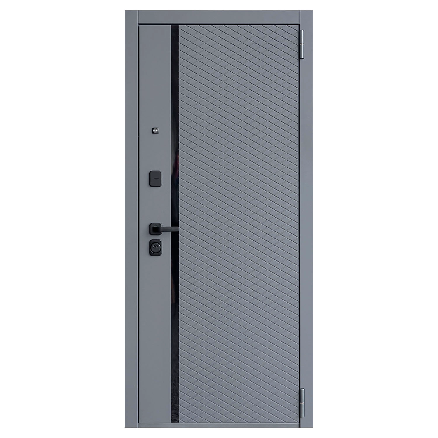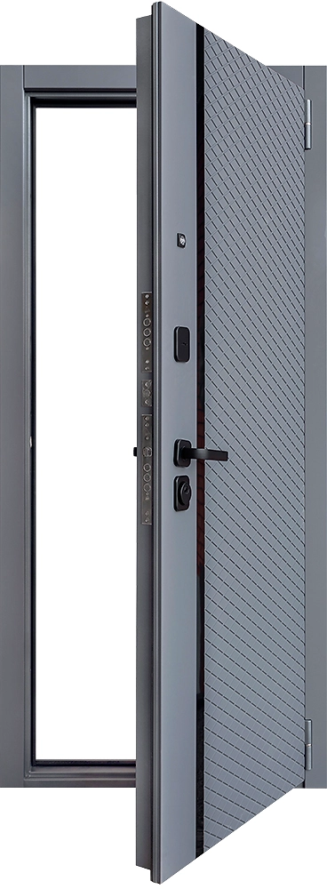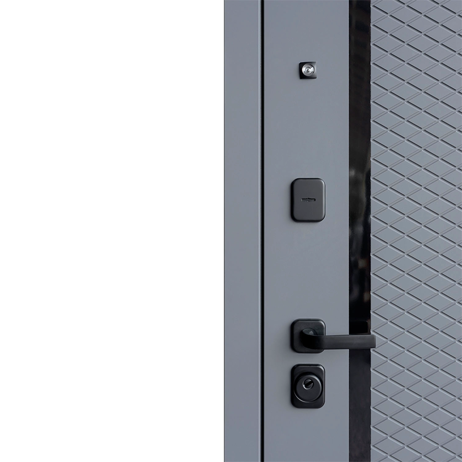 Дверь металлическая ДК 80 Софт 860х2050 левая - это современная дизайнерская дверь, имеющаа снаружи фрезерованную панель МДФ, с установленным на нее молдингом. Покрытие внешней стороны - тактильная пленка серый софт. Внутренняя МДФ панель декорирована пластиковым молдингом, пленка софт белый снег. Цельногнутый короб окрашен порошковой краской серый муар. Наличники декорированы МДФ в цвет полотна. По периметру двери идут два контура уплотнения, которые защищают помещение за дверью от сквозняков и посторонних запахов.