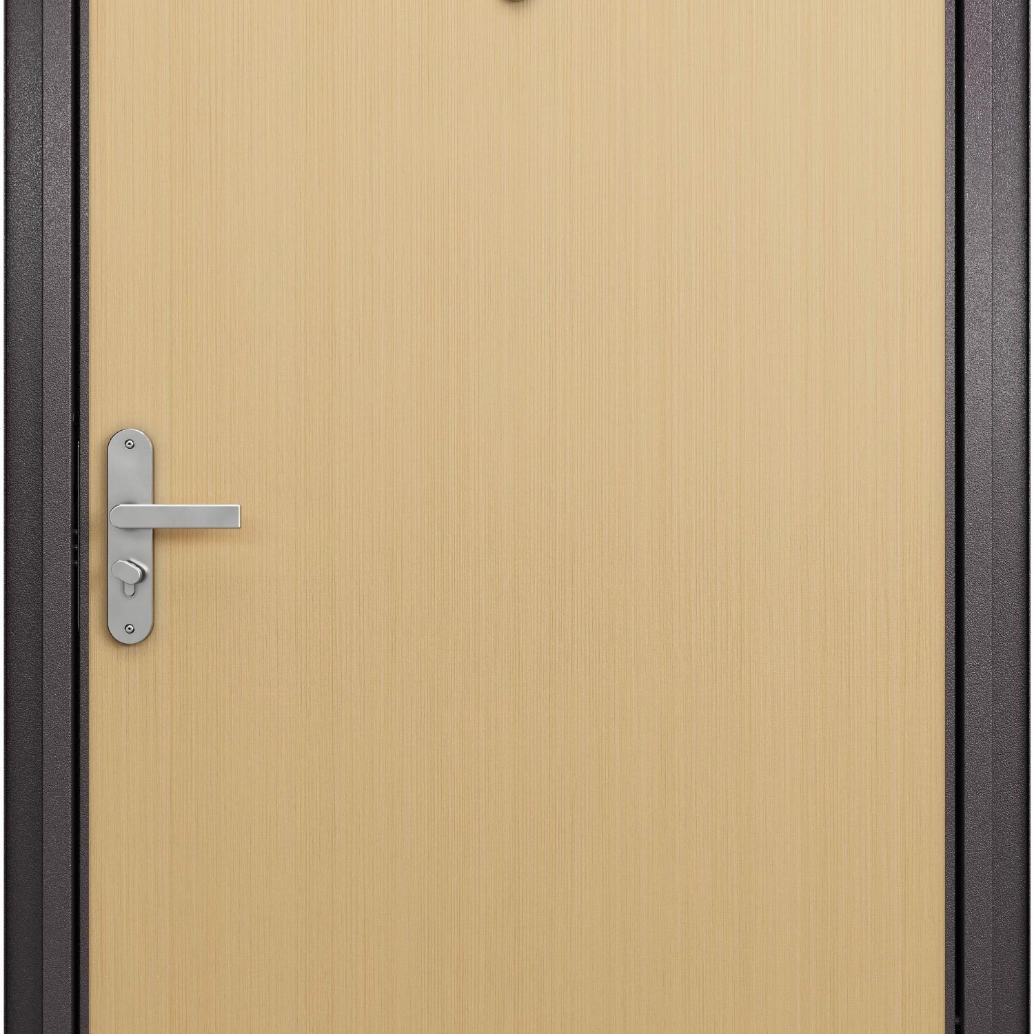Замок – цилиндровый 2-го класса взломостойкости по ГОСТ. Для двери за такой бюджет – максимально надежное решение. Для защиты от сквозняков, шумов и пыли дверь оснащена резиновым уплотнителем, проложенным по внутреннему периметру короба. Также уплотнитель приглушает звуки удара при закрывании двери. Дизайн модели – лаконичный, без излишеств. Снаружи гладкий металл, внутри – гладкая панель в светлом цвете "Дуб белый".